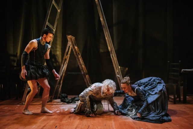 Costumes created by Oscar Clark were ragged remnants, cleverly devised in layers that were stripped away as the play progressed and both the actors and characters began to descend into madness. This stripping away of physical items seemed to play out hand in hand with a stripping away of characters, the actors became more themselves and less Shakespeare’s characters as the end grew near.