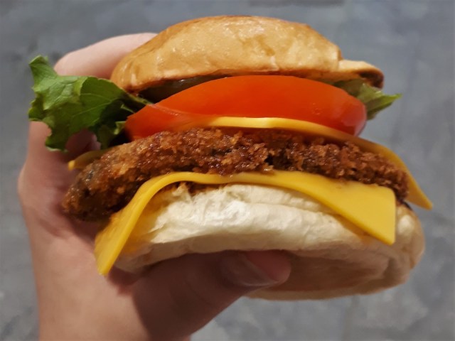 | Burger Project’s delicious vegetarian burger – can’t go wrong with that crispy crumbed Portobello mushroom! |