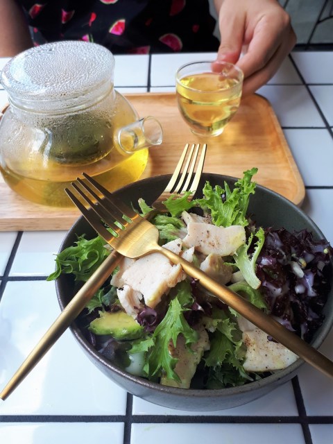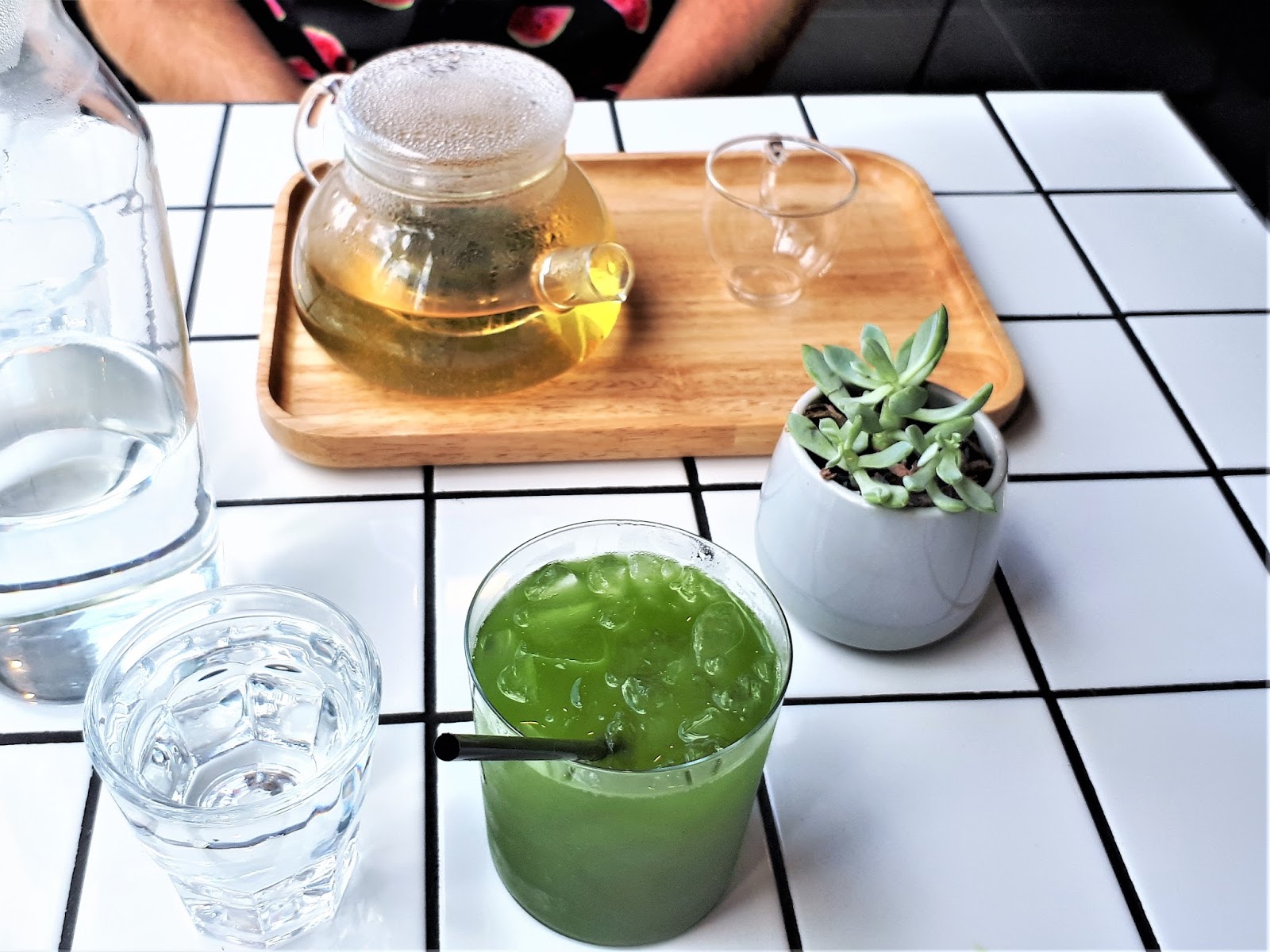 We took a seat upstairs – there’s a cute lil’ nook if you prefer to sit/kneel. Décor is cute and minimalist, and there are nice little messages painted onto the walls (“Have a nice day,” recommends the wall above the self-serve water station).