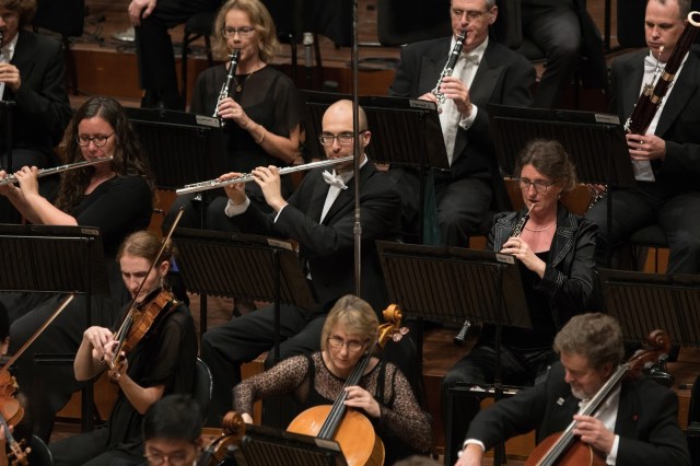 Sergio Tiempo also gave an encore performance of the second of Ginastera’s three Argentine Dances, noting before he began that “…you won’t believe it is the same composer.” After the wild ride of Ginastera’s Concerto, his Danza de la moza donosa (“Dance of the Beautiful Maiden”) was certainly much gentler, although finishing unexpectedly on an atonal chord which left the audience in anticipation rather than certain that the piece had concluded. Again, Tiempo’s playing was a pleasure to witness. I always enjoy watching the reactions of the orchestra to encore piece played by guests – it is telling of the incredible level of skill that other musicians at the top of their field are awed and impressed.