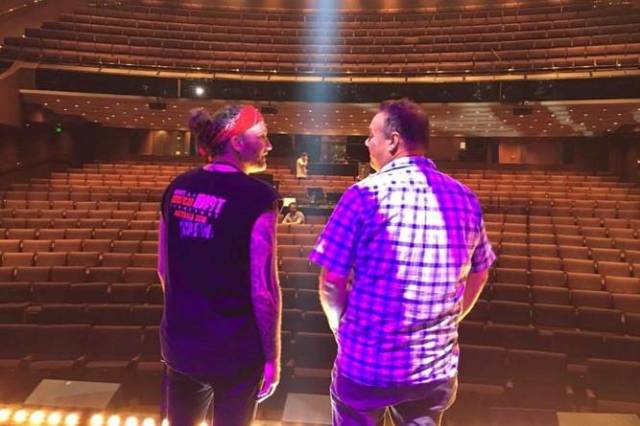 Luke Bradnam and Ben “Dobbo” Dobbin from Brisbane’s Triple M radio station are Green Day fans, it turns out – and one of them has won the right to share the stage with the all-star cast in tonight’s performance!