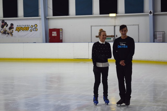 | Shelley Craft, 2018 Disney on Ice Ambassador, and Disney on Ice skater Nick Fernandez take to the ice at Iceworld Acacia Ridge |