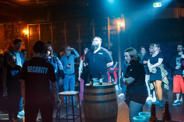 The characters of villainous Don John and Hero’s mischievous lady-in-waiting Margaret appear to have been conflated into a single role, played with excellent madness by Jennifer Anne Laycock. The role-merging and gender swapping didn’t muddy the plot, and Laycock’s accordion playing was an interesting addition to the set list. In keeping with the venue, Johanna Lyon was wonderfully enthusiastic as Dogberry – you’ve met at least one overzealous security guard like this in your life.