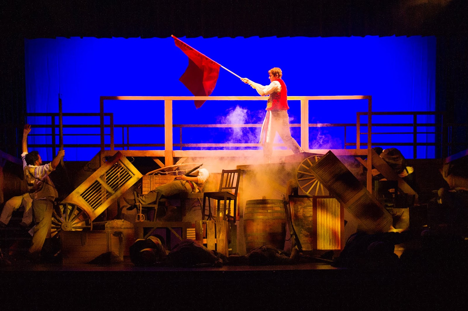Choreography by Gabrielle Parkin was enjoyable to watch, especially the jaunty Thenardier and waltzing at the wedding of Cosette and Marius, and the crowd scene choreography was simple but effective. A wide variety of costumes were used, from prison rags and Javert’s police uniform to high society ball gowns and the Thenardiers’ hodgepodge outfits.