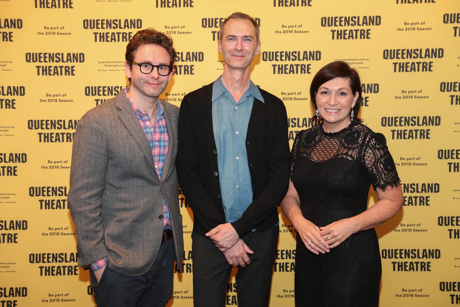 | Winner of the Queensland Premier’s Drama Award 2018-19 David Megarrity (centre) with Queensland Theatre’s Artistic Director Sam Strong and Minister for the Arts Hon Leanne Enoch |