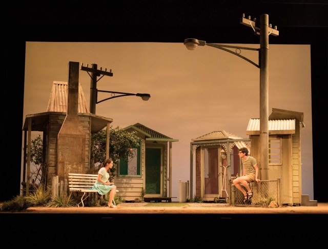 Helpmann Award-winning design by Anna Cordingley, lighting design by Matt Scott, and composition/sound design by Darrin Verhagen bring the audience right into Corrigan, even from the back rows – you can almost feel the gritty red dirt burning the soles of your feet, hear the crickets chirping at the dam, and see the sun rising over the tiny town. The rotating set also allows the audience to explore Corrigan from many angles, and peer into windows and dark corners alongside the characters.