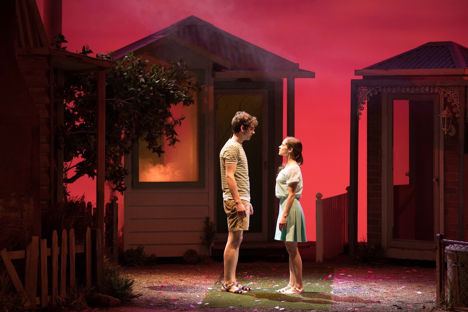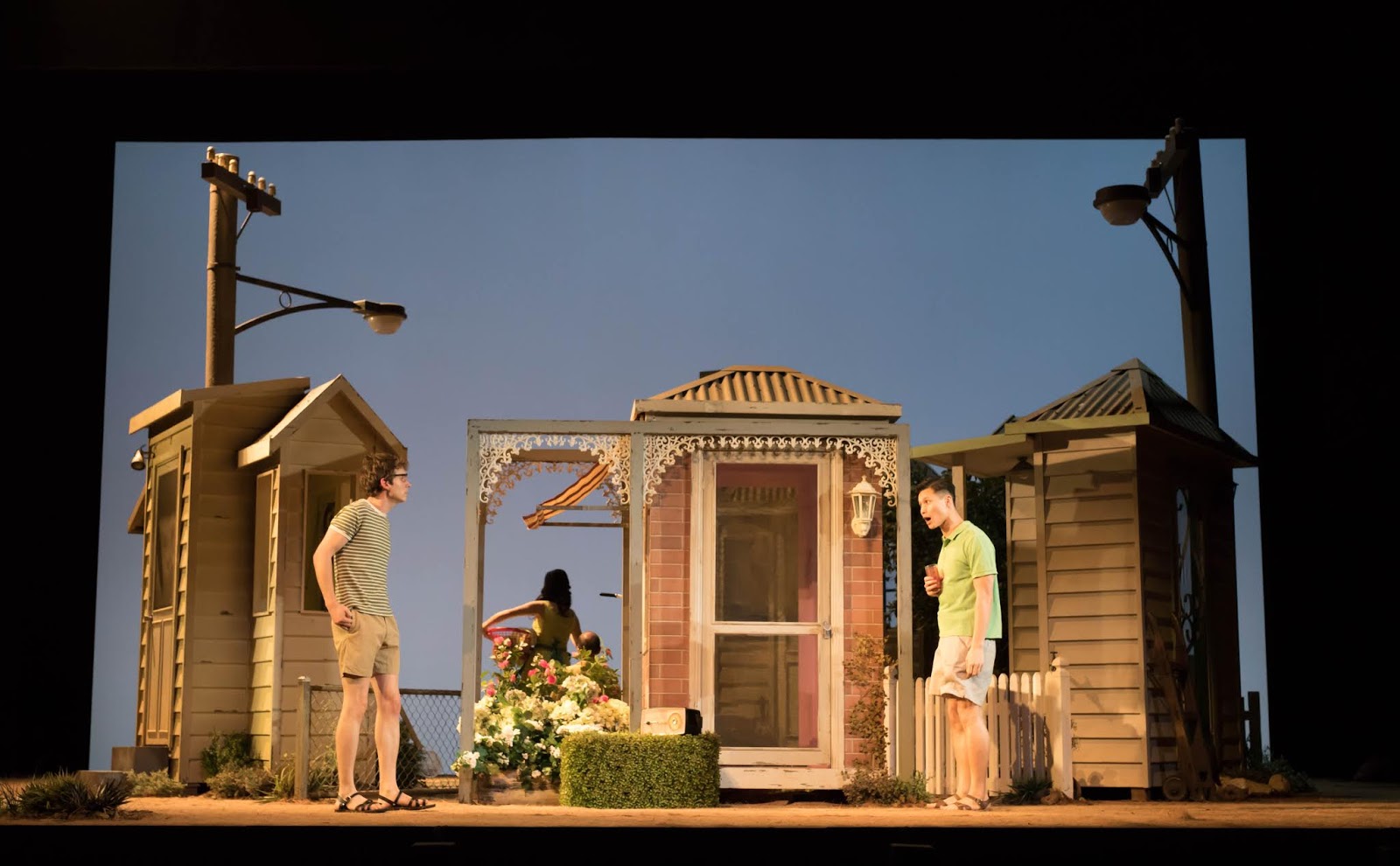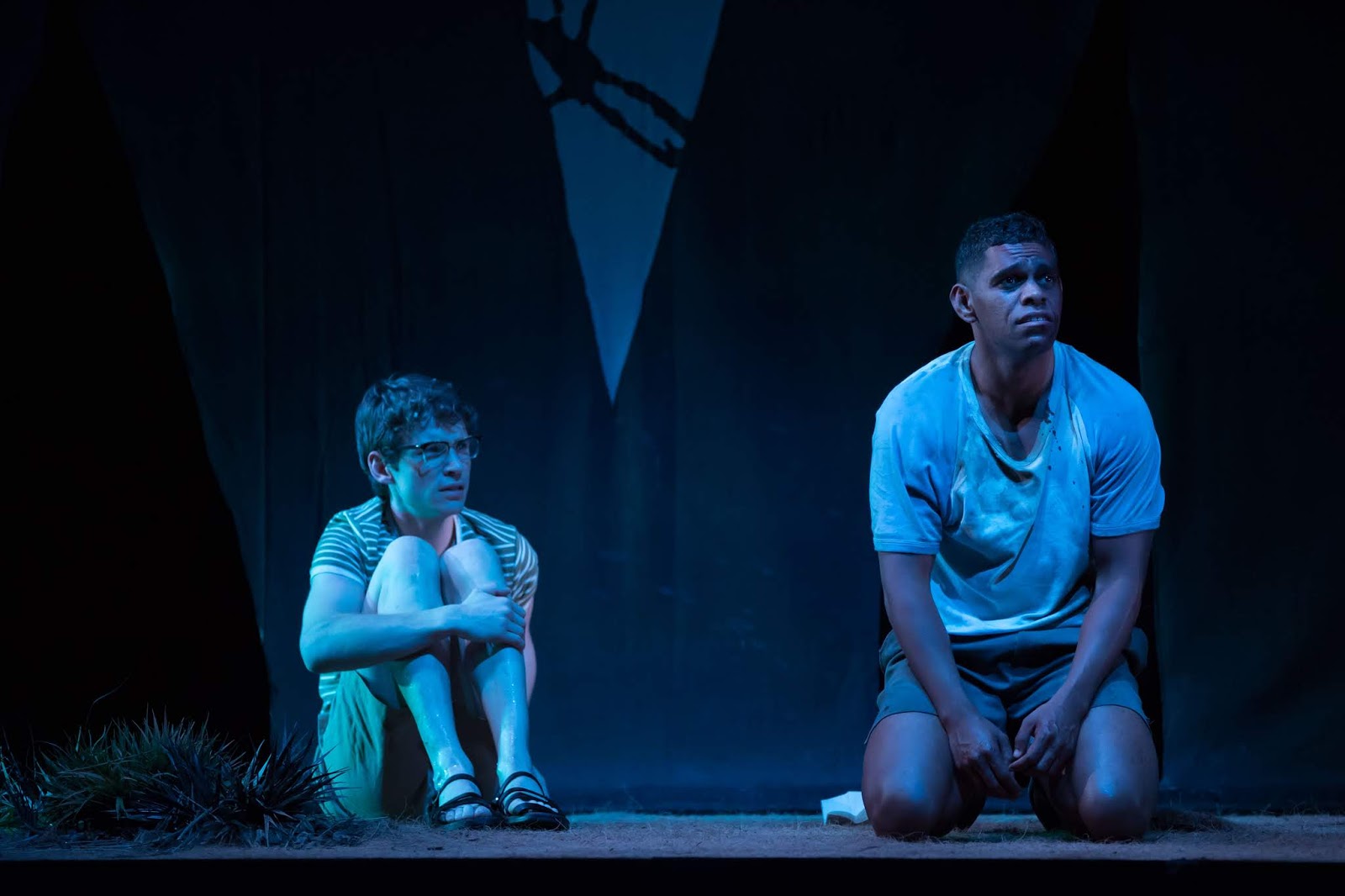 Perhaps the greatest difficulty of adapting a work of young adult fiction is the inherent incongruity of casting adults to play teenagers, but the cast of Jasper Jonesdo an admirable job. Nicholas Denton brings awkward, sometimes-poetic Charlie Bucktin to life onstage and delivers Charlie’s many monologues with an introspective magnetism. Hoa Xuande has great energy and perfect comedic timing as Charlie’s best friend Jeffrey Lu and their absurd fake voices, hypothetical questions, and play-wrestling feel authentically young and silly. Shaka Cook brings a solemn dignity to the character of Jasper Jones, who is wise to the ways of the world, and Melanie Zanetti has a nervously charming energy as Eliza Wishart as well as playing the role of her sister, Laura.