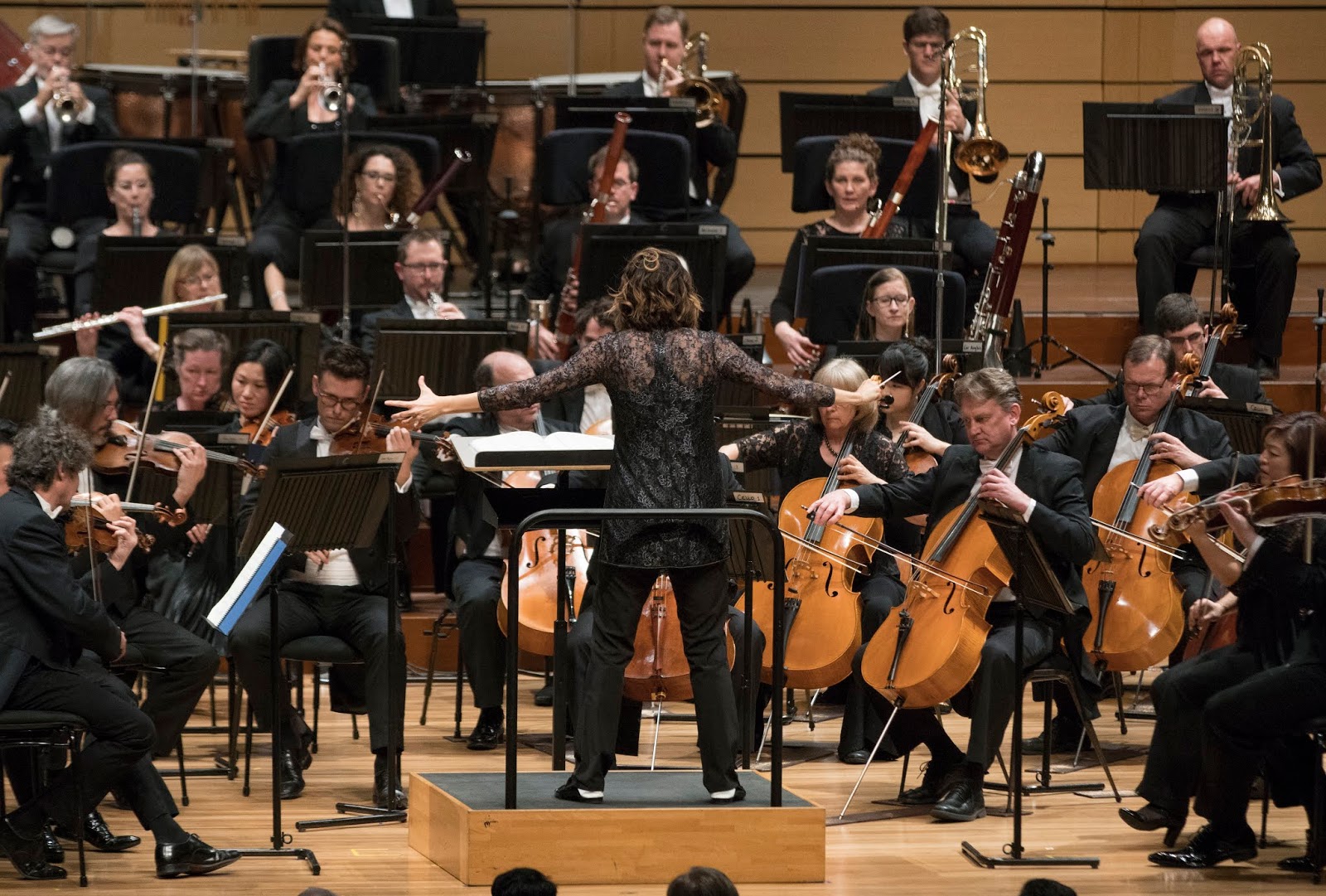| Alondra de la Parra conducts the Queensland Symphony Orchestra, photographed by Peter Wallis. |