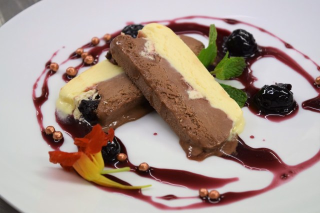 And, the grand finale, the Nostimo Indulgence – layers of white chocolate ice cream, sesame halva, sour cherry preserve, dark chocolate ice cream: