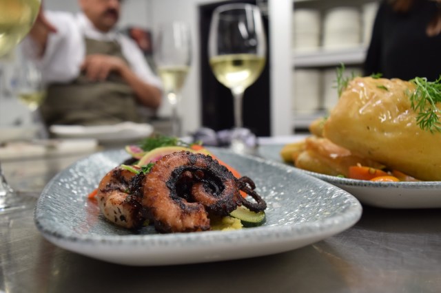 It was a privilege to spend an evening in the kitchen at The Greek Club’s Nostimo restaurant on Thursday night with Chef in Residence David Tsirekas. David hosted a small group of us for a masterclass, sharing the recipes and methods of two of his signature dishes, and then sharing a meal, a glass of wine (or three), and stories with us. Plenty of food photos below, my mouth honestly started watering as I was writing this…