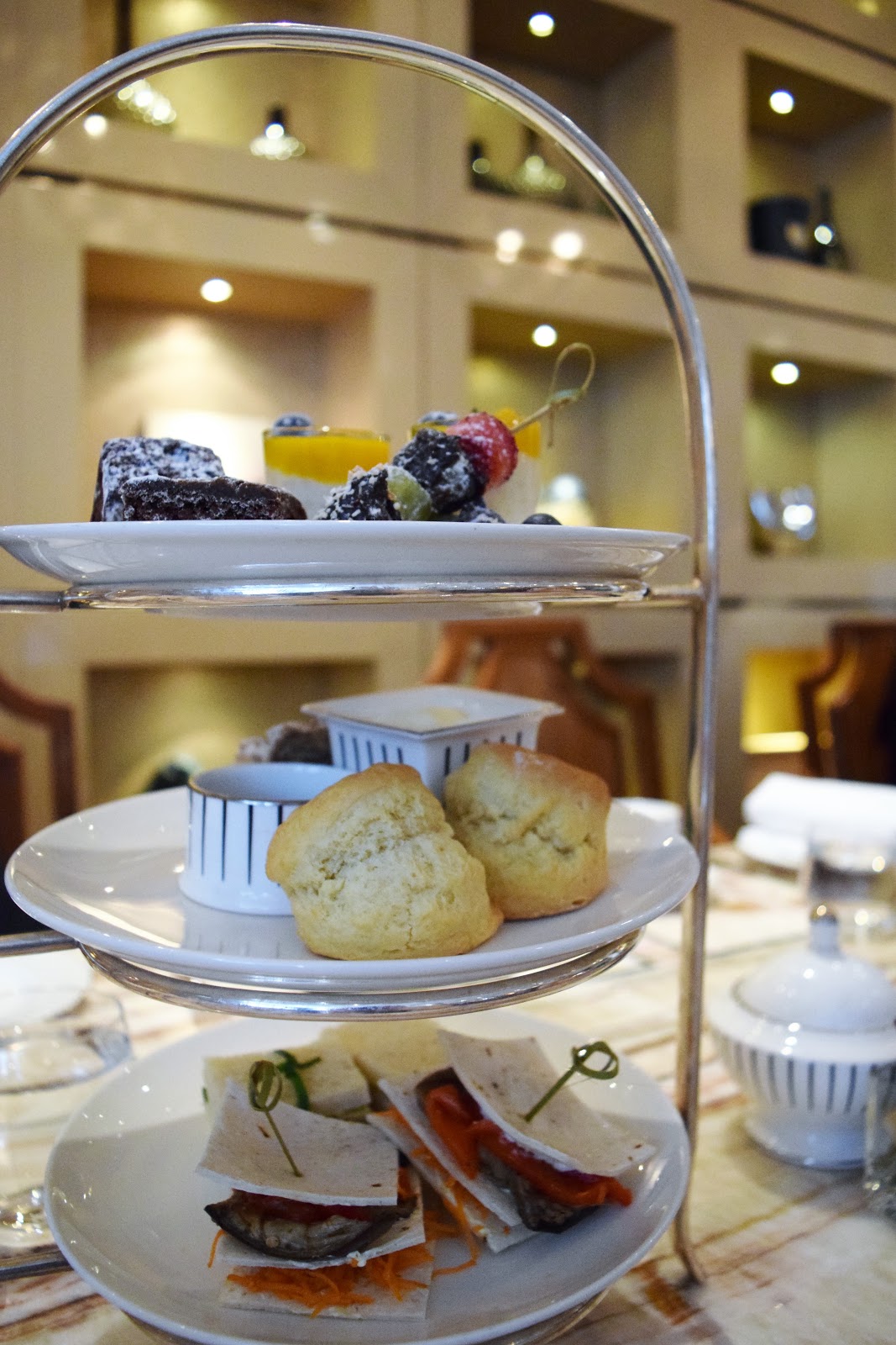 I was delighted to be invited to experience the new high tea menu – I had never been to Bacchus before, but had heard wonderful things about their degustation dining (maybe one day!). Settled on the Podium Level of Rydges South Bank, Bacchus, the restaurant is a beautiful space with soft down lighting and comfortable seating – it doesn’t feel stuffy, or over-fancy, or pretentious, but that is what makes the experience so excellent. The attention to detail and commitment to quality is impeccable, and the service was warm and friendly throughout. The tables were set with spotless bone china, imported from England and the same crockery used at The Goring Hotel in London, where the late Queen Mother enjoyed taking high tea.