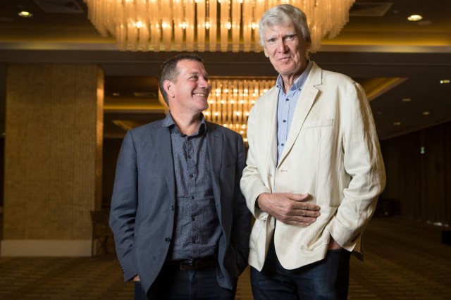 | Rhys Muldoon, who will play the role of Isaac Newton, with playwright David Williamson. Photographed by Jono Searle. |