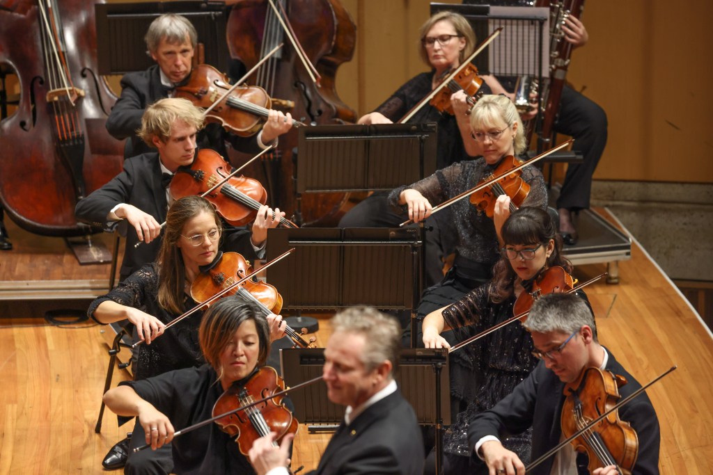 Beethoven and Sibelius started strong, opening with the colourful Prelude to Act III from Wagner’s opera Lohengrin. Based in medieval legend, Lohengrin premiered in Germany in 1850, and the prelude to Elsa’s Bridal Chorus finds the cathedral in chaos, as told through crashing cymbals, bold brass, and dancing strings. The beautifully coordinated swooping of bows in the large violin section added a visually exciting element to this high-energy performance.