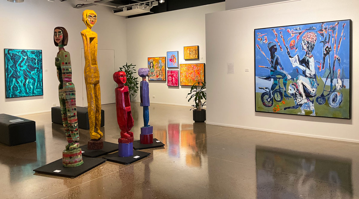 Mitchell Fine Art presents an energetic and eclectic exhibition of paintings, drawings, ceramics and sculptures by Queensland artist, Carlos Barrios, who continues to play with familiar themes of human connection and the blurred lines between reality and fantasy. These concepts are portrayed by the figures and animals that inhabit his artworks.