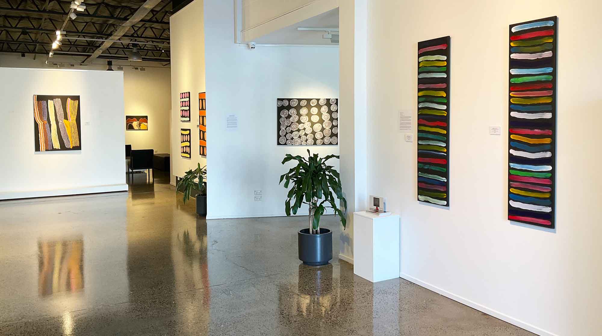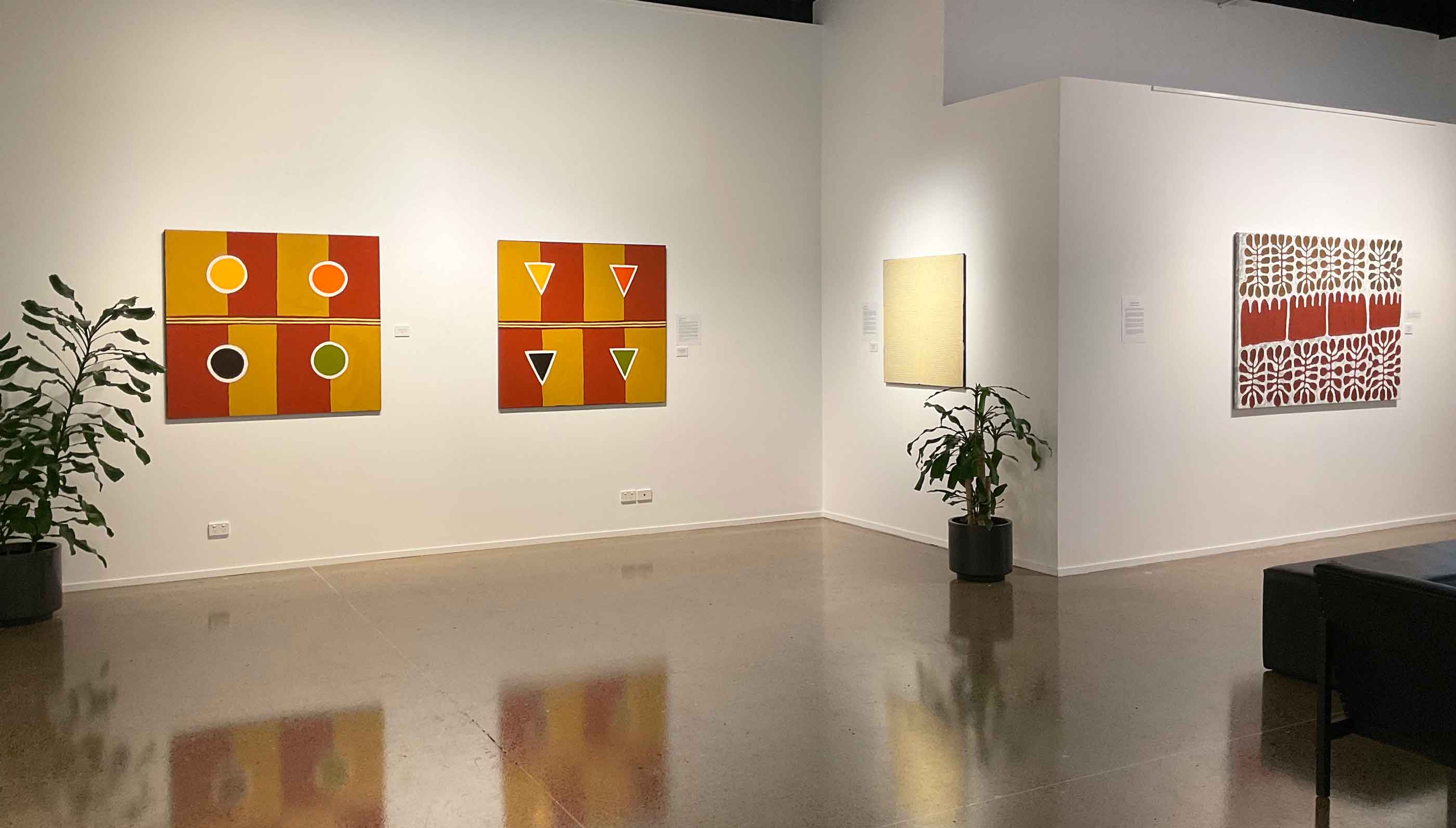 The term ‘minimalism’ was first coined in the United States in the late 1950’s, its movement challenging preconceived notions of what art is and could be. The artworks in this exhibition challenge the viewers’ perceptions of Aboriginal art and highlight the spirit of the artists’ stories in their truest form.