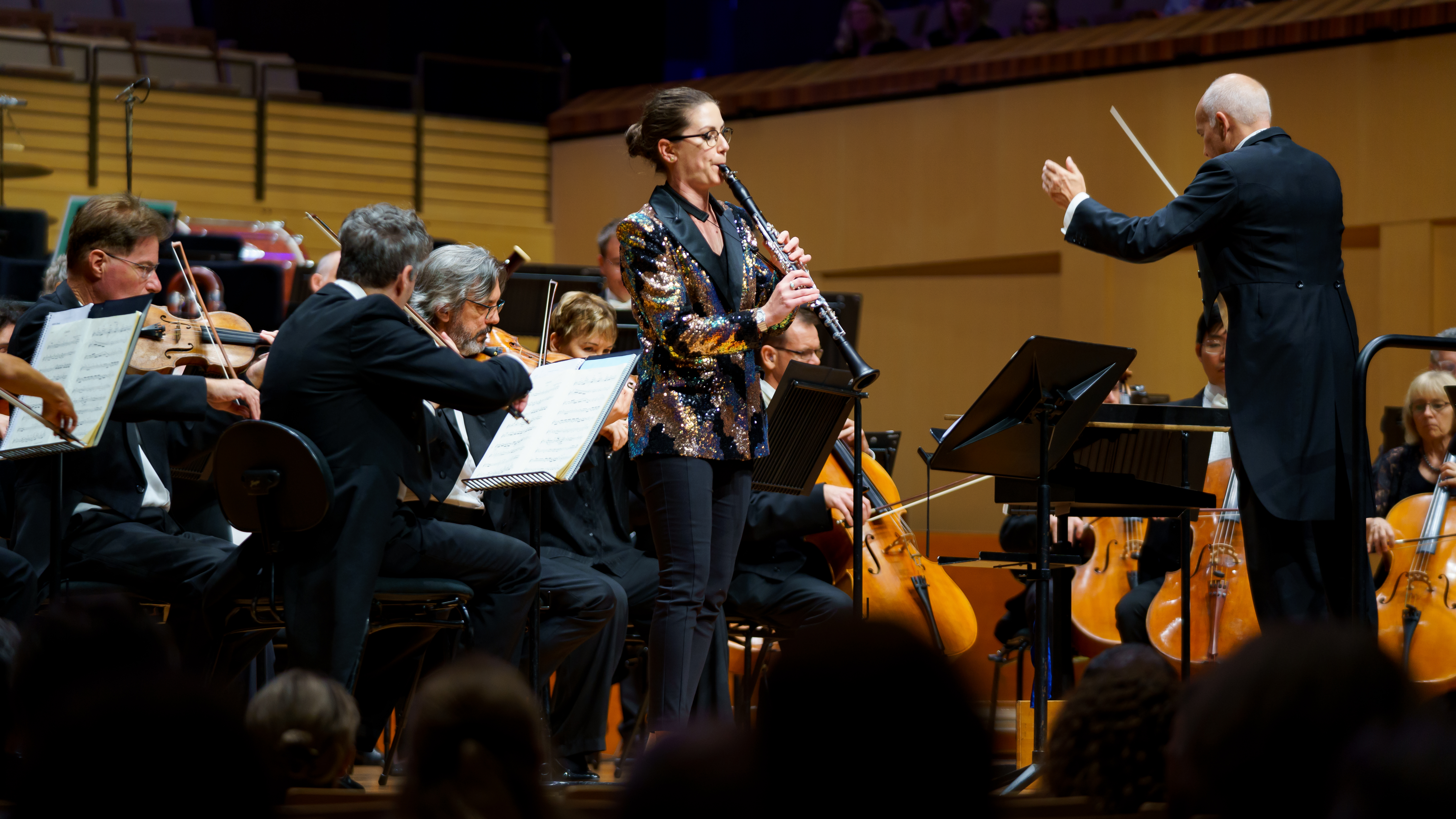 As the soloist in QSO’s performance of the concerto, Silver literally sparkled in a sequinned jacket and every note was clear, bright, and distinct. It was interesting to see her adjust her instrument and to have a clear view of her playing, as this level of detail is generally obscured by other sections of the orchestra. The concerto began with the bright and enchanting Allegro, supported by emphatic strings and woodwinds, into the soothing, peaceful Adagio and finally the speedier, uplifting Rondo: Allegro, finishing with a flurry of strings and a flourish. Silver’s playing was so precise, time seemed to stop for a moment, particularly in the Adagio.