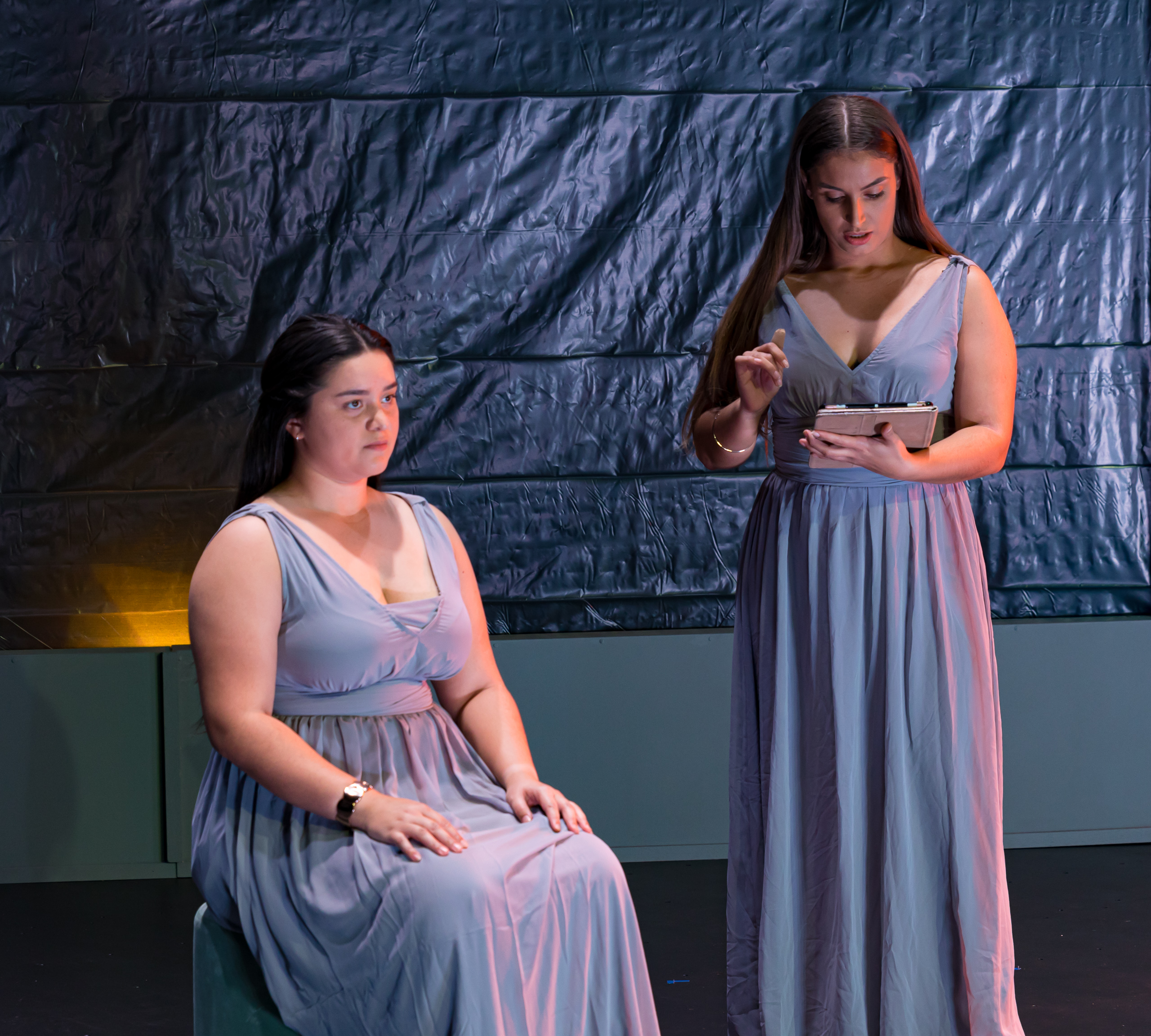 Observatory Theatre’s production of Control was directed and designed by Timothy Wynn. Structurally, Control made use of short, sharp scenes and the play was split into three distinct parts across space and time; a reality tv show in space, 2030; the Museum of Childhood, 2050, during the Earth’s ‘riot era’; and a teacher programming facility on New Earth, 2082. Each of these three narratives used a different story structure, and worldbuilding was achieved effectively through both the script and the staging with small details, such as pill-based meals. Given the use of rapid-fire short scenes, and how quickly and effectively the script established place and characters, the second and third narratives both felt slightly drawn out at times.