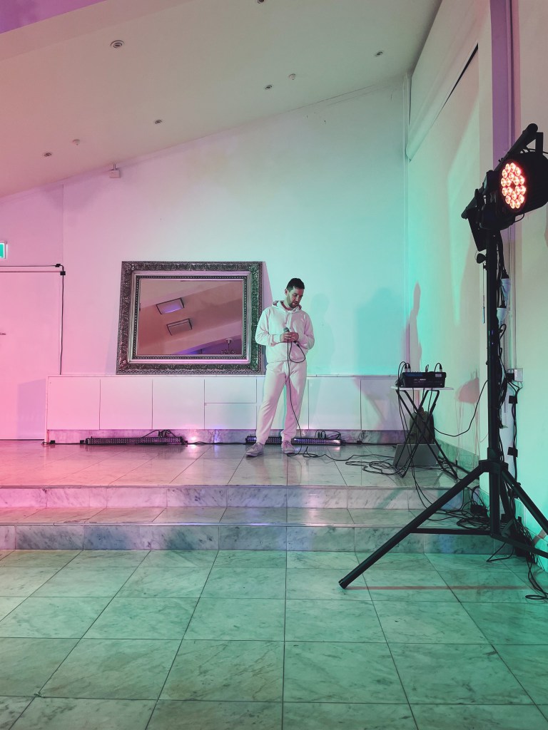 Coleman Grehan’s output captured the spirit of a fringe festival – personal, experimental, almost uncomfortable in its sincerity and vulnerability – as it considered art, self, society, and mortality in a genre-defying, theatrical spoken word performance set to electronic music.