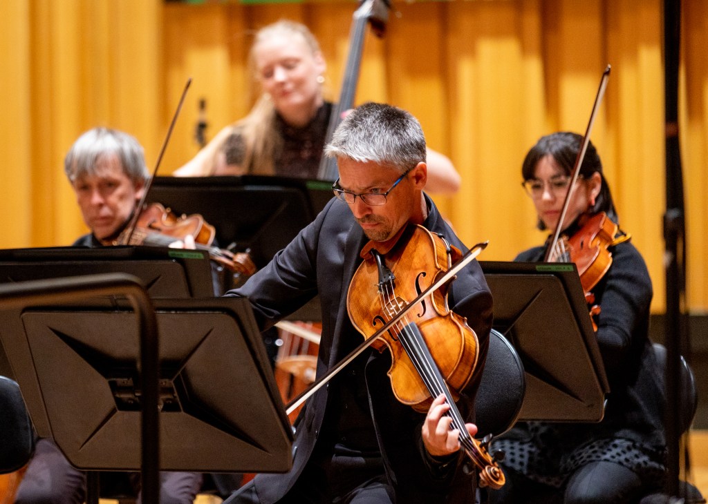 The concert opened with Richard Strauss’ Metamorphosen for 23 solo strings, led by co-Concertmaster Natsuko Yoshimoto and with only the strings musicians onstage. Sweeping but sombre, the piece was composed for 23 solo strings, not for a strings section, and as such each instrument – 10 violins, 5 violas, 5 cellos, and 3 double basses – played an individual role. An elegy to the destruction of culture during World War II, including many opera houses across Germany where Strauss had built his career, the music swelled in intensity, instruments competing and overlapping before all coming together again, and receding. The mournful music carried me like a tide, and when the last notes finally drew out into silence and the musicians lowered their bows, I realised I had been holding my breath.