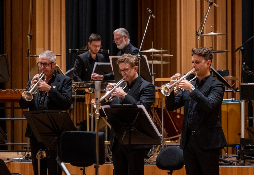 In direct contrast to the first, the second piece for Joy and Sorrow was performed only by brass and percussion musicians. Commissioned by the Queensland Symphony Orchestra, David Montgomery’s new composition Tenebrae and Passacaglia for Brass and Percussion featured solos for trumpet, horn, trombone, timpani, and percussion. The distributed arrangement of the musicians onstage also clearly showcased each section and musician.