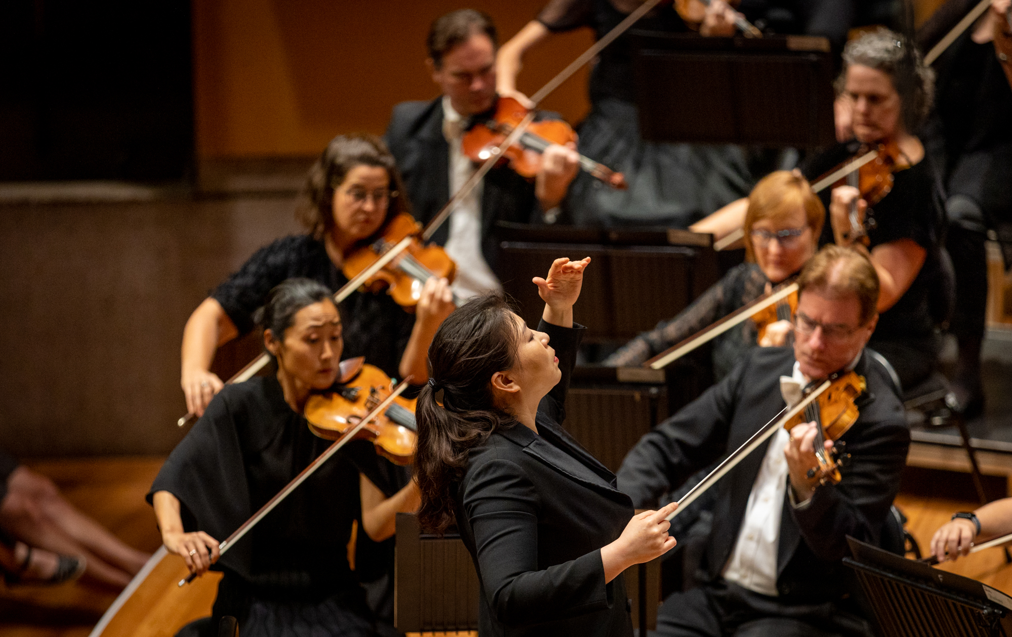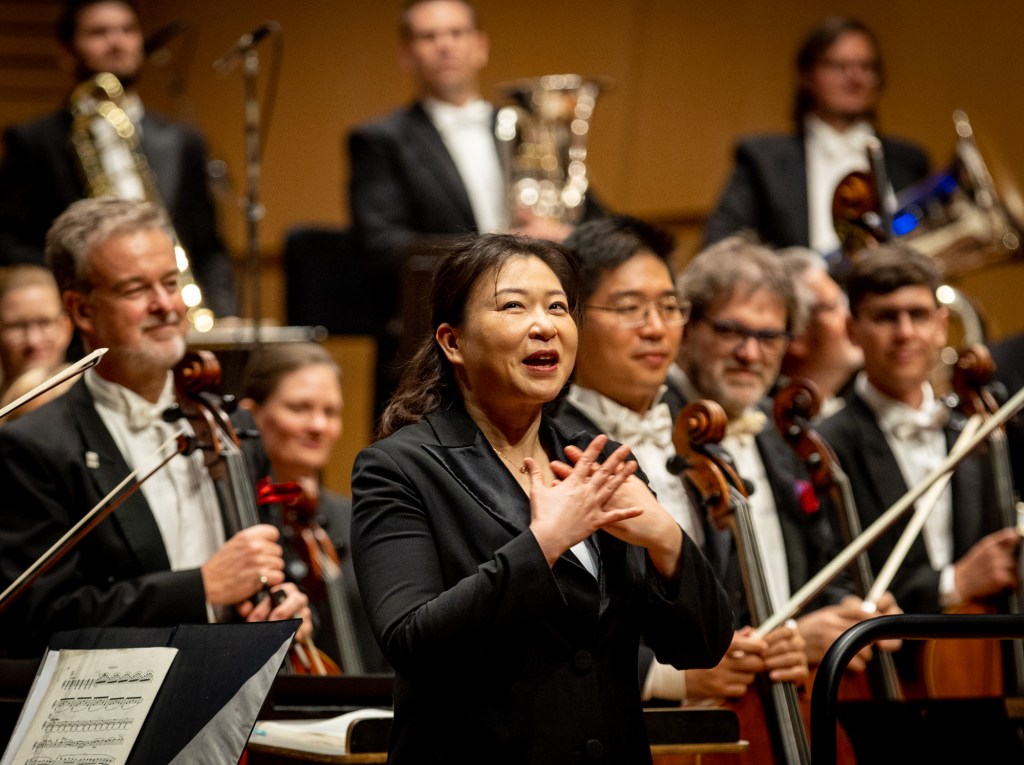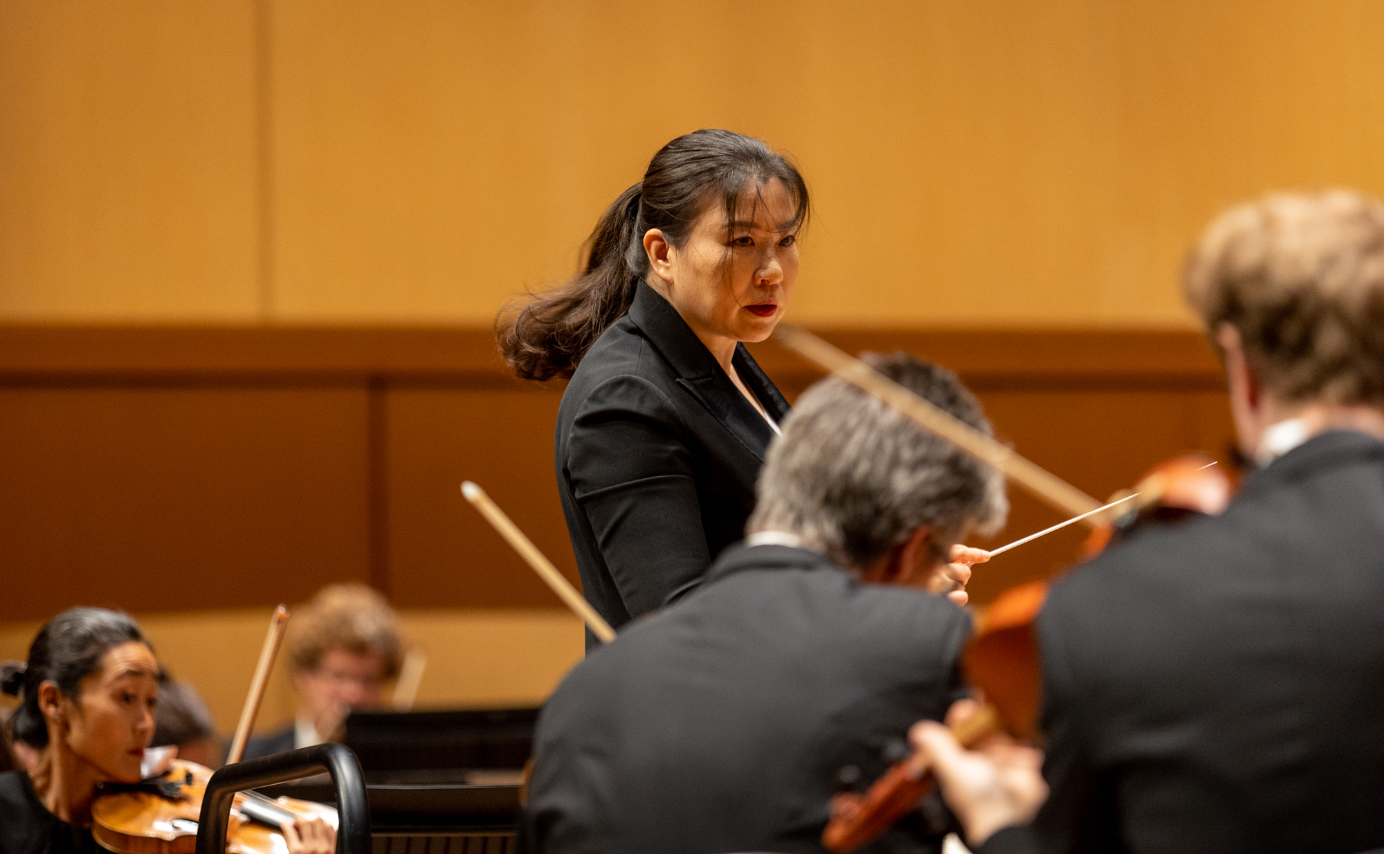 The stage was very full for this final piece of music, and guest conductor Shiyeon Sung was sharp and deft. Conducting with quick, high movements, she was engaging to watch, especially her subtle gestures in the quiet moments. Sung was the first South Korean conductor to take the podium of internationally renowned orchestras including the Konzerthaus Orchestra Berlin and Los Angeles Philharmonic, and has performed with an ever-growing list of international orchestras over the past two decades.