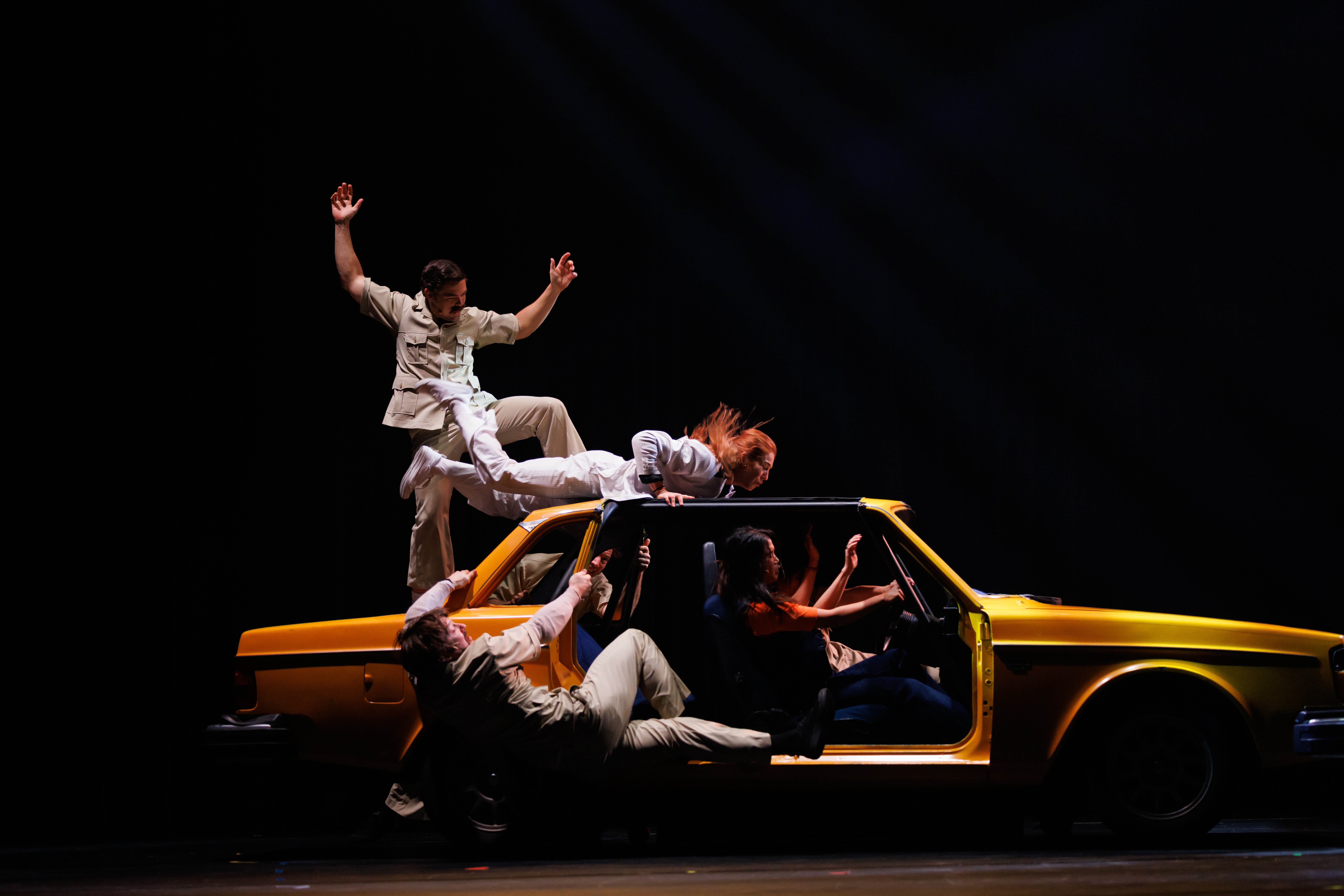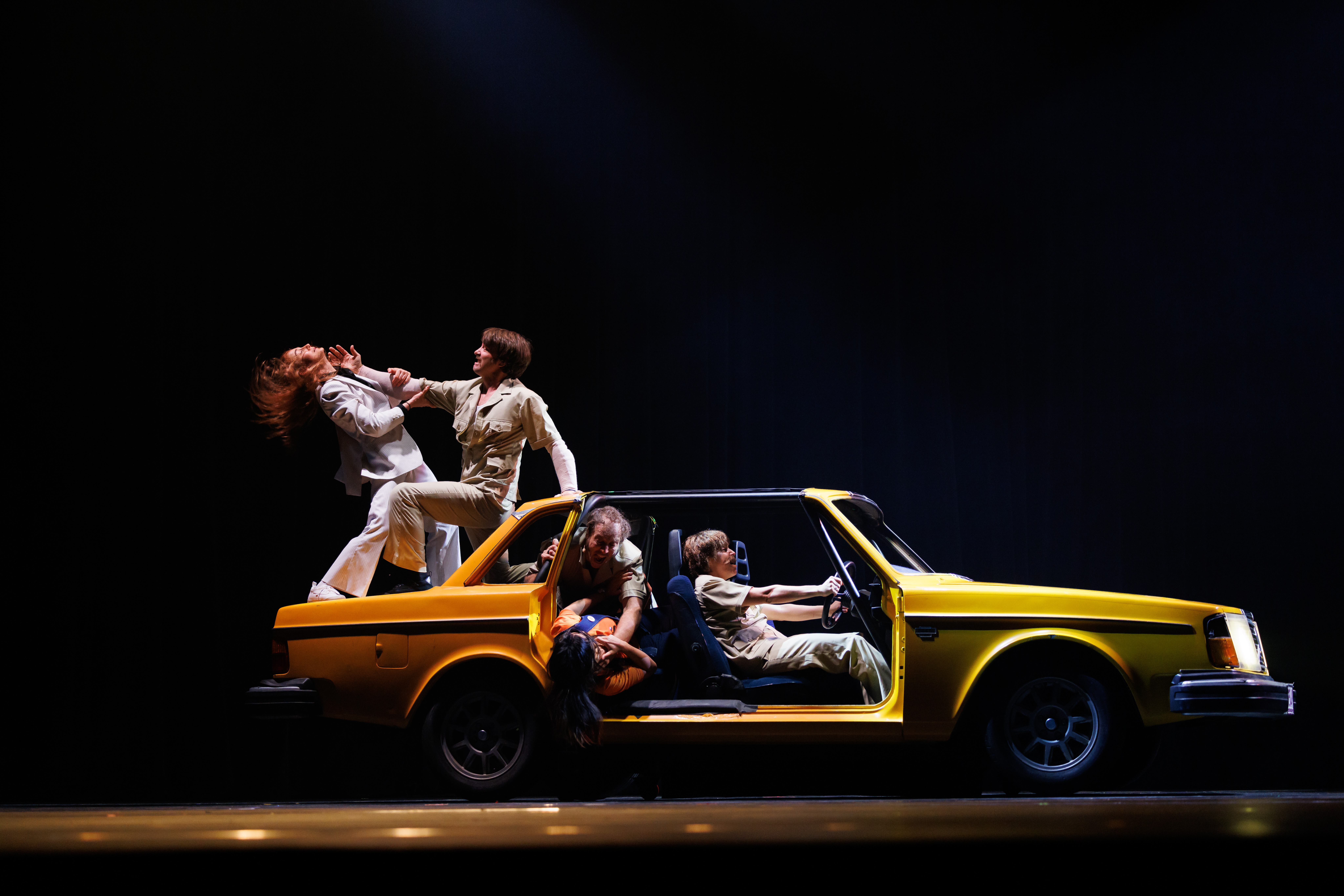 Sound design and composition by Luke Smiles was fundamental to Stunt Double, from the high energy soundtrack to the crucial sounds of impact as the stunts were performed. Lighting design by Chloe Ogilvie was also integral to the visuals of the performance, setting the emotion of each scene, on and off camera, and creating the illusion of movement and changing speed in the car chase (a highlight!).
