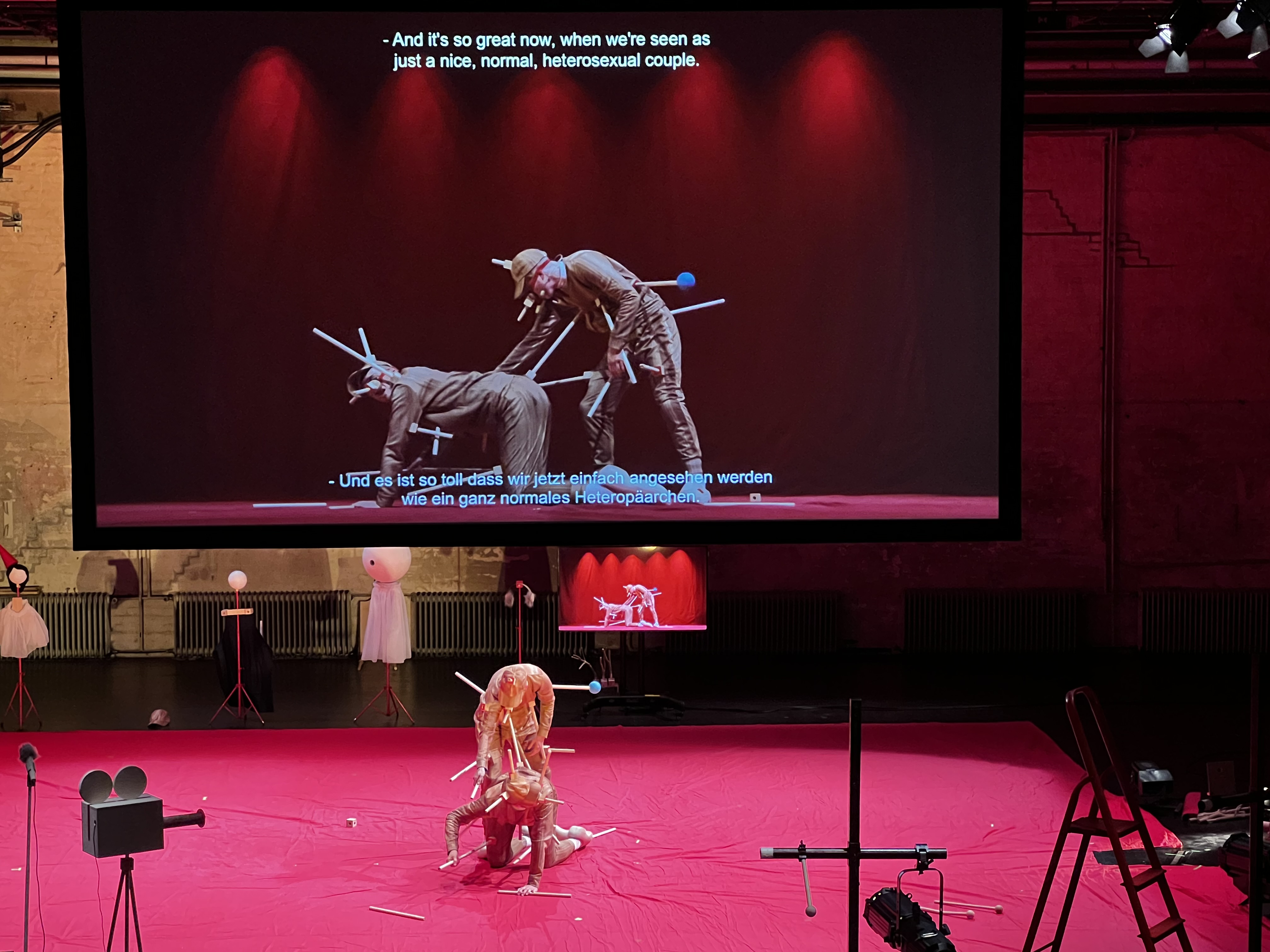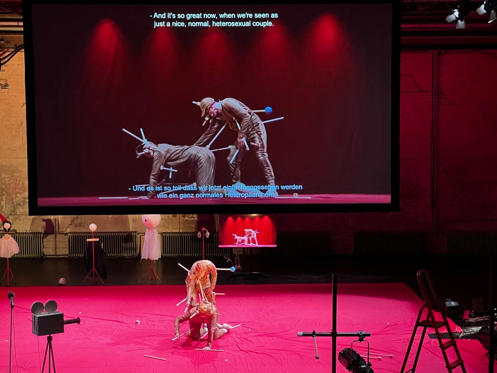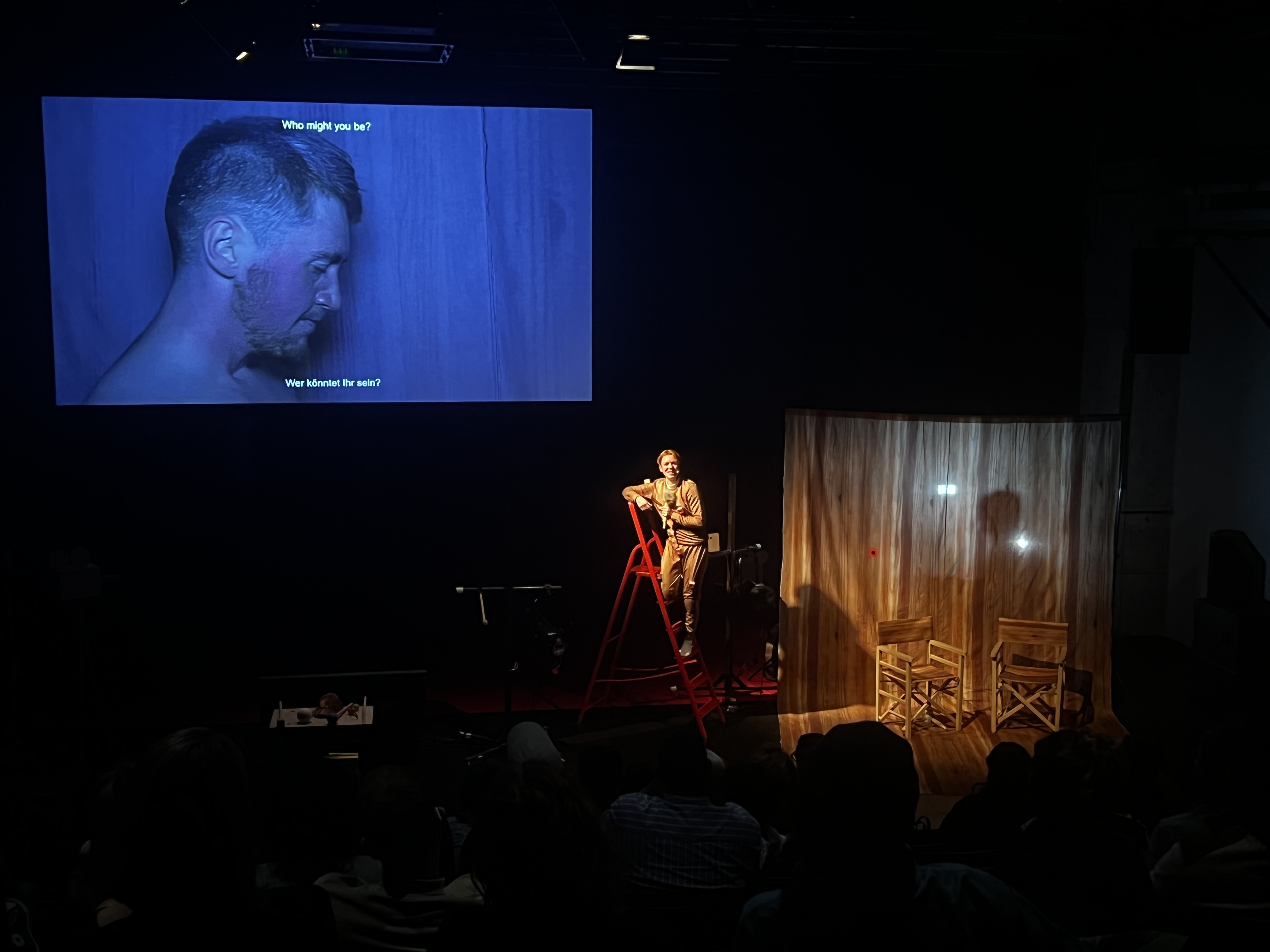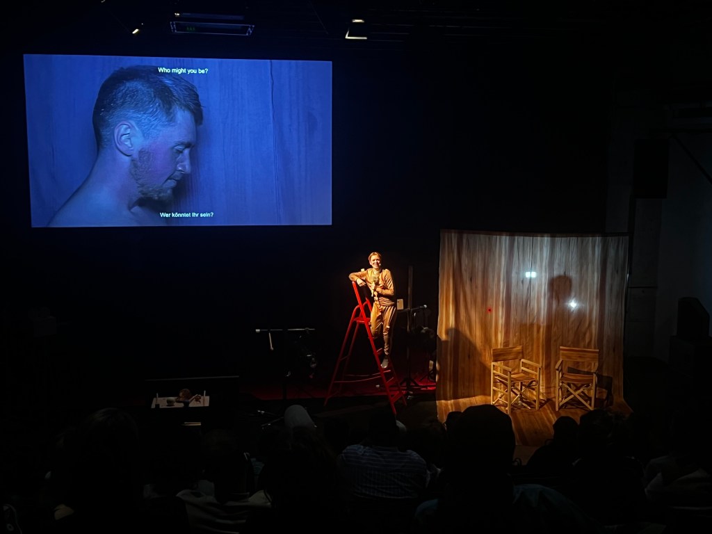 The show’s content veered from the serious – like the role of privilege in accessing gender affirming care, not to mention the hoops that individuals must jump through before making it to the long waitlist – and existential to the comically absurd and risqué, such as an erotic diversion featuring the festival’s Artistic Director as a Christian-Grey-esque character.