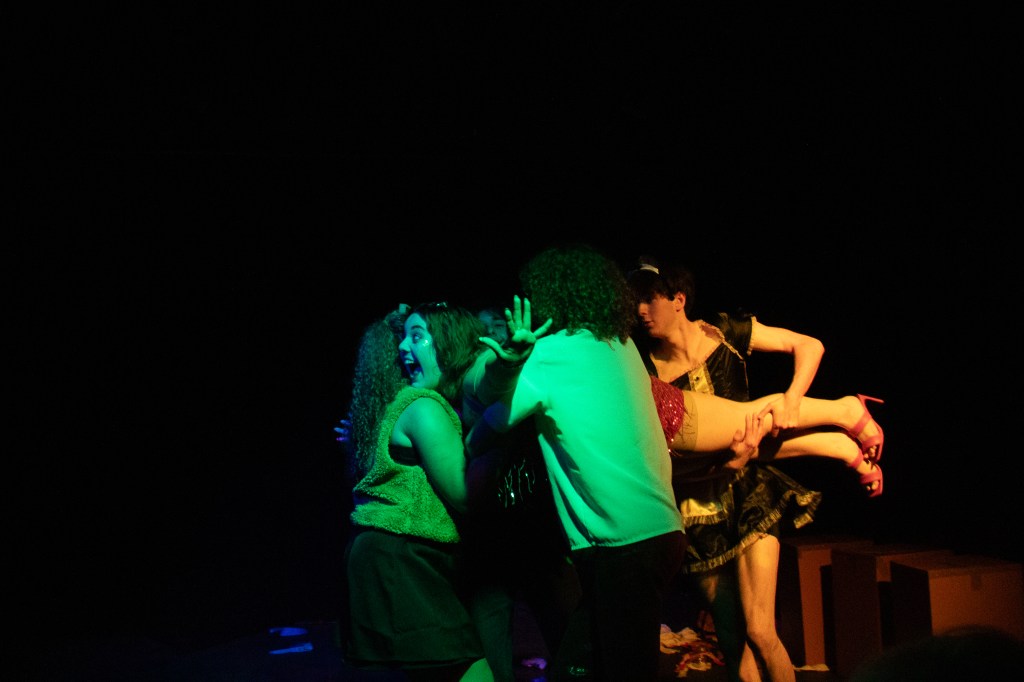 The staging was full of movement, and the play itself was broken into short scenes that maintained momentum on each characters’ storyline. At several points, characters spoke directly to the audience, from Sigma’s gag-inducing lectures to Emma and Tiff’s drunken heckling. A sex scene told in freeze frames was both funny and memorable, as was an attempt at the iconic Dirty Dancing lift.