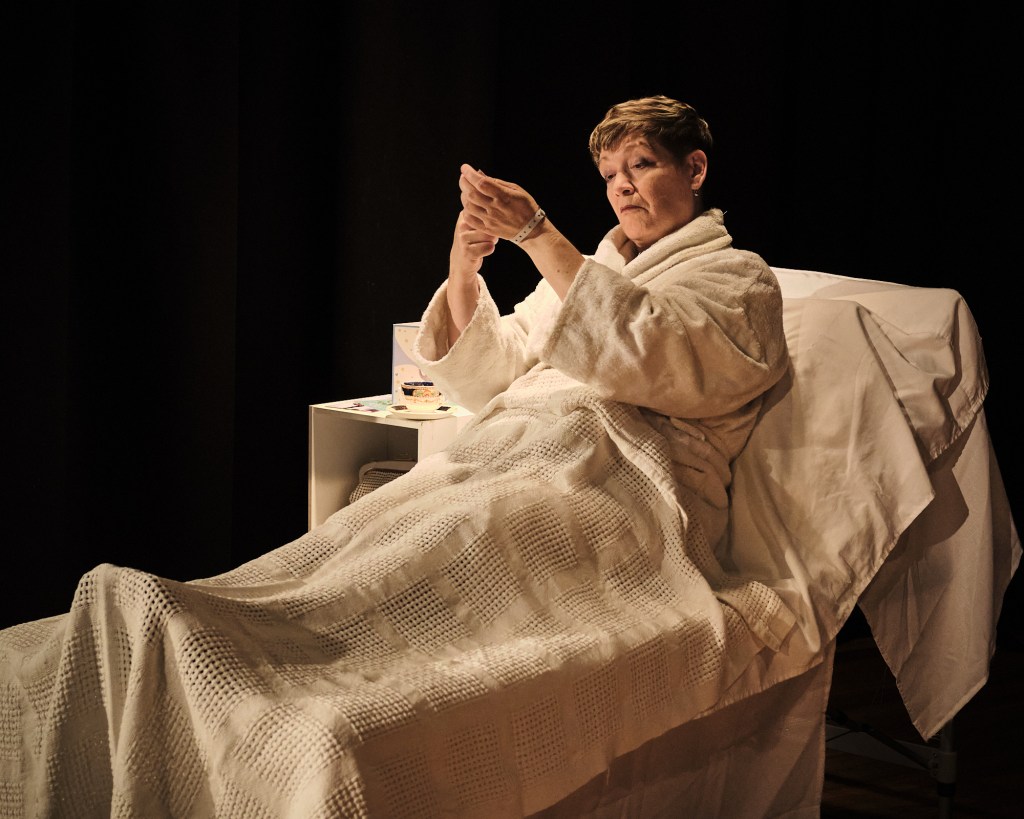 Following an interval, Amanda McErlean performed the role of Margaret Schofield in A Woman of No Importance, an office worker whose routine is interrupted by a sudden onset of bad health. Undeterred by hospitalisation, doctors, or impending surgery, Miss Schofield emulates her office environment in hospital, befriending the nurses and doing her best to be helpful and useful to them and to the other patients, as well as sharing gossip and making jokes. McErlean maintained a strong accent throughout the performance, and embodied her character’s positivity, confidence, and sociability.