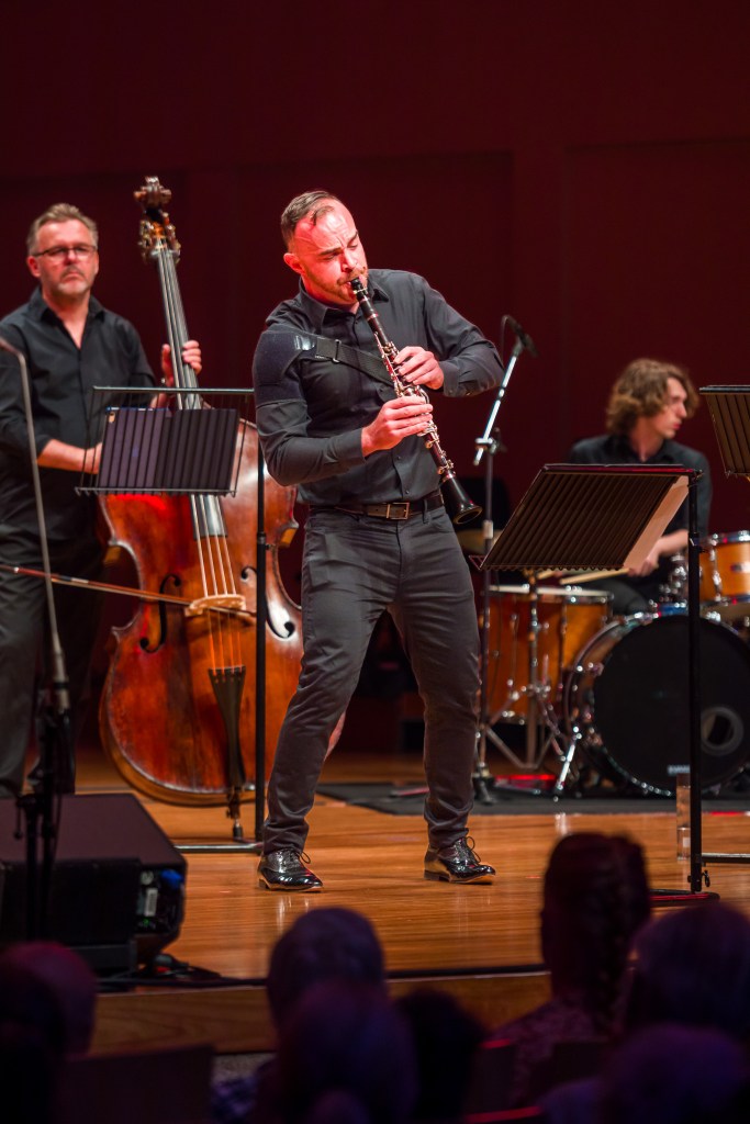 Guest composer and soloist, stringed multi-instrumentalist John Jorgensen, and Southern Cross Soloists’ Didgeridoo Artist in Residence, Chris Williams, then premiered their new work, Global Rivers Rising, an exciting and uplifting piece that cohesively blended sounds and styles. Drawing influence from a range of countries and cultures and inspired by the interconnectedness of people and music everywhere, Global Rivers Rising is part of the ongoing SXS Didgeridoo Commissioning Project. Launched in 2022, the project sees a 50/50 collaboration between a national or international composer and Williams, who has been Artist Residence at SXS since 2018. The project intends to produce three new works for didgeridoo and classical ensemble every year for ten years, leading up to the 2032 Olympic Games to be hosted in Brisbane and building a repertoire of new classical music with a quintessentially Australian flavour.