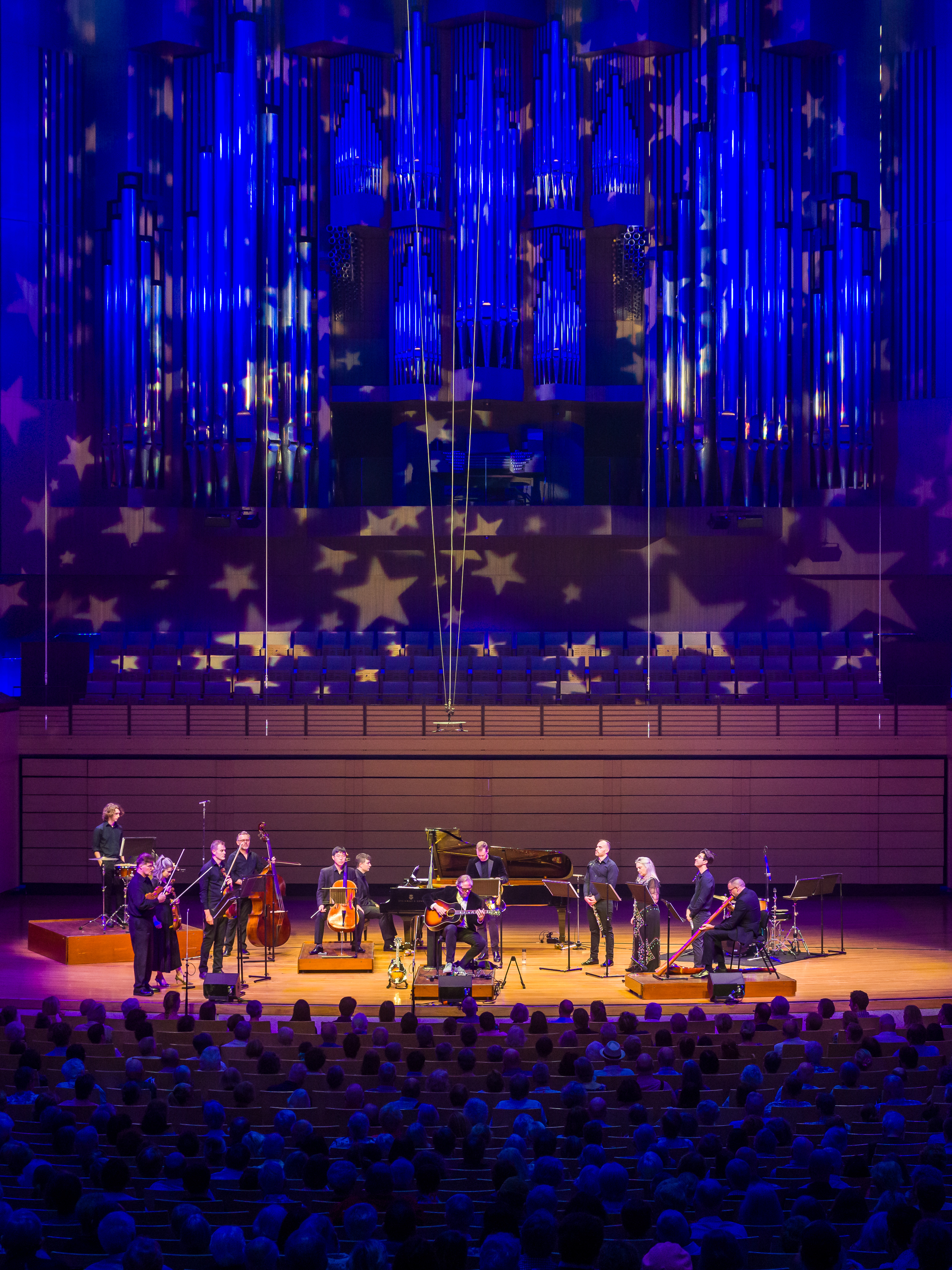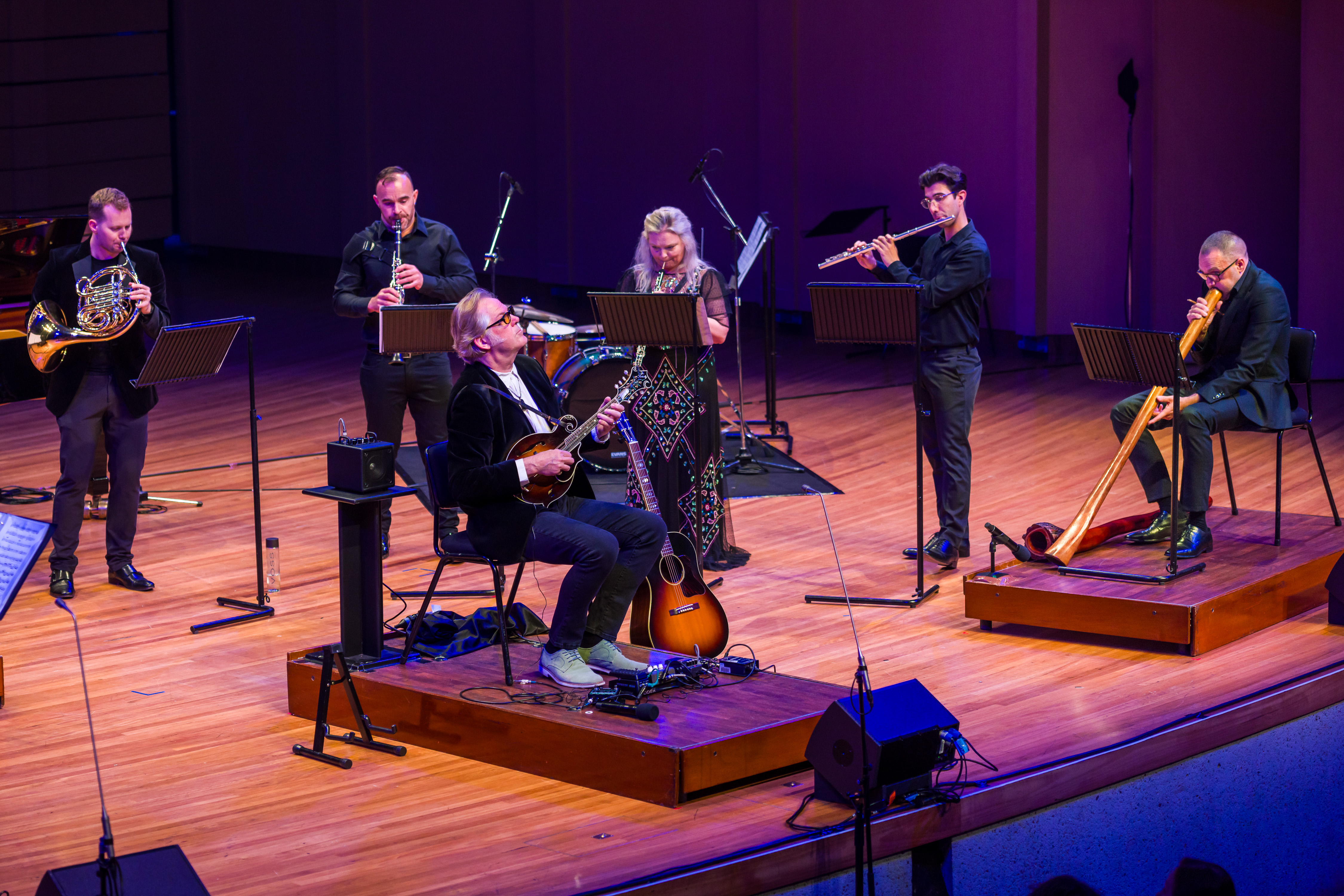 Guest composer and soloist, stringed multi-instrumentalist John Jorgensen, and Southern Cross Soloists’ Didgeridoo Artist in Residence, Chris Williams, then premiered their new work, Global Rivers Rising, an exciting and uplifting piece that cohesively blended sounds and styles. Drawing influence from a range of countries and cultures and inspired by the interconnectedness of people and music everywhere, Global Rivers Rising is part of the ongoing SXS Didgeridoo Commissioning Project. Launched in 2022, the project sees a 50/50 collaboration between a national or international composer and Williams, who has been Artist Residence at SXS since 2018. The project intends to produce three new works for didgeridoo and classical ensemble every year for ten years, leading up to the 2032 Olympic Games to be hosted in Brisbane and building a repertoire of new classical music with a quintessentially Australian flavour.