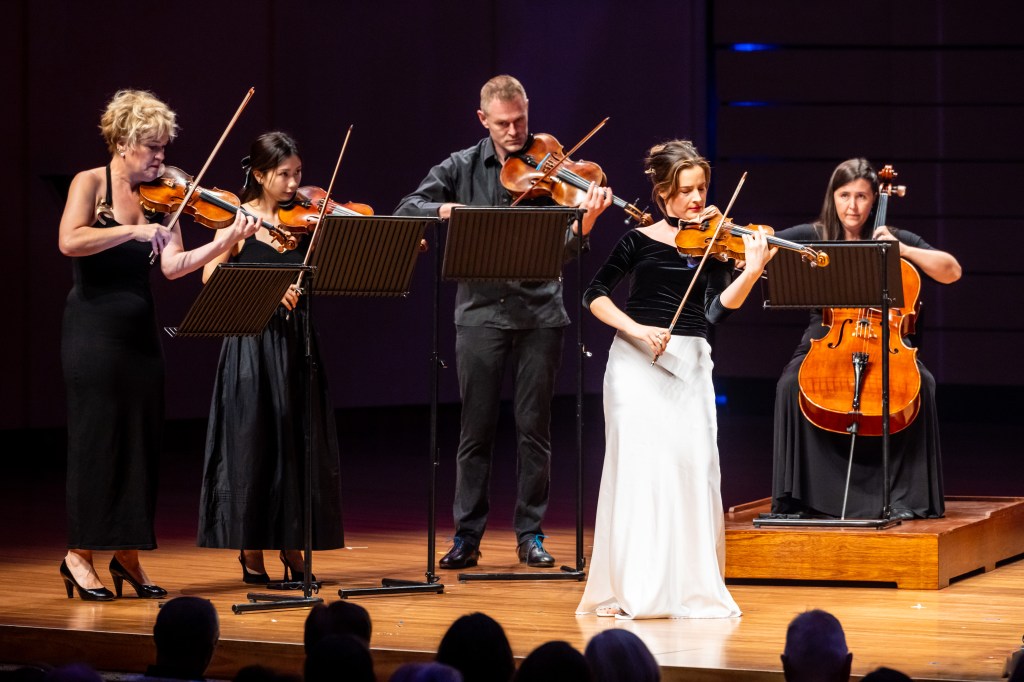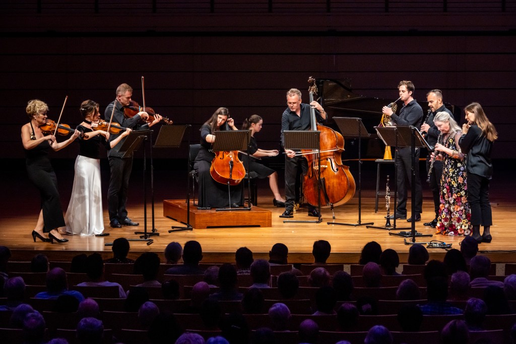 The next piece was the Australian premiere of award-winning French composer Thibaut Vuillermet’s Élégie, and the world premiere of its arrangement for chamber orchestra. Tania Frazer told the audience that she saw a video of it being performed online just two days after its world premiere in October 2023, and wrote to the composer immediately about programming it for SXS’ 2024 season. Inspired by the loss of two loved ones, including Vuillermet’s father, Élégie certainly evoked a sense of sadness and mournful remembrance, but finished with shining strings that suggested the other side of grief, living on with hope for the future and fond memories.