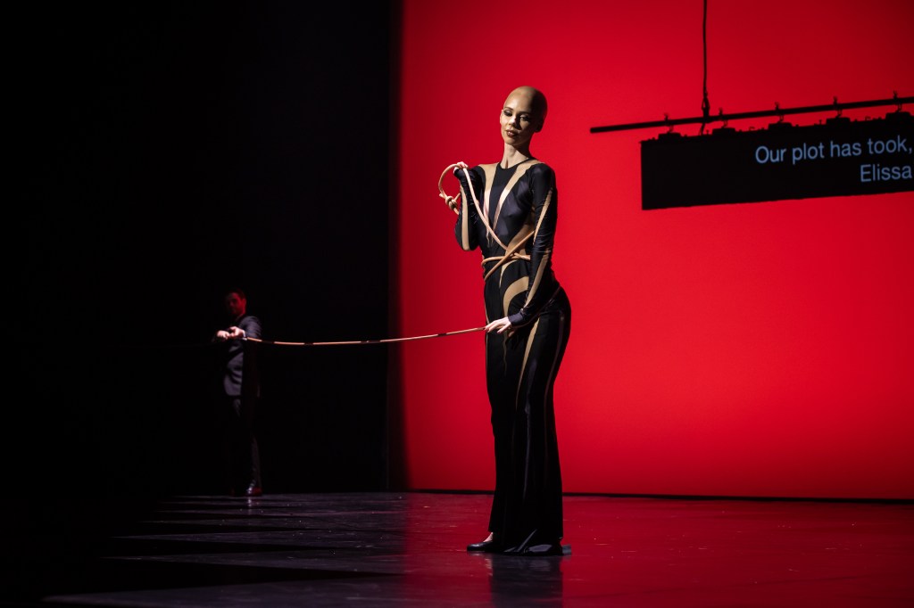 Directed by Circa Artistic Director Yaron Lifschitz, who also designed the minimalist staging, this new production of Dido and Aeneas fuses music and movement to tell an ancient story of doomed lovers with modern flair and spectacle. The opera is sung in English, and surtitles were projected across several different screens on the stage, some of which were raised and lowered throughout the performance. Scrolling text taken from a wide range of sources posed questions and quotes about love, life, destiny, and duty, and this scrolled as the audience took their seats as well as in parts of the performance.
