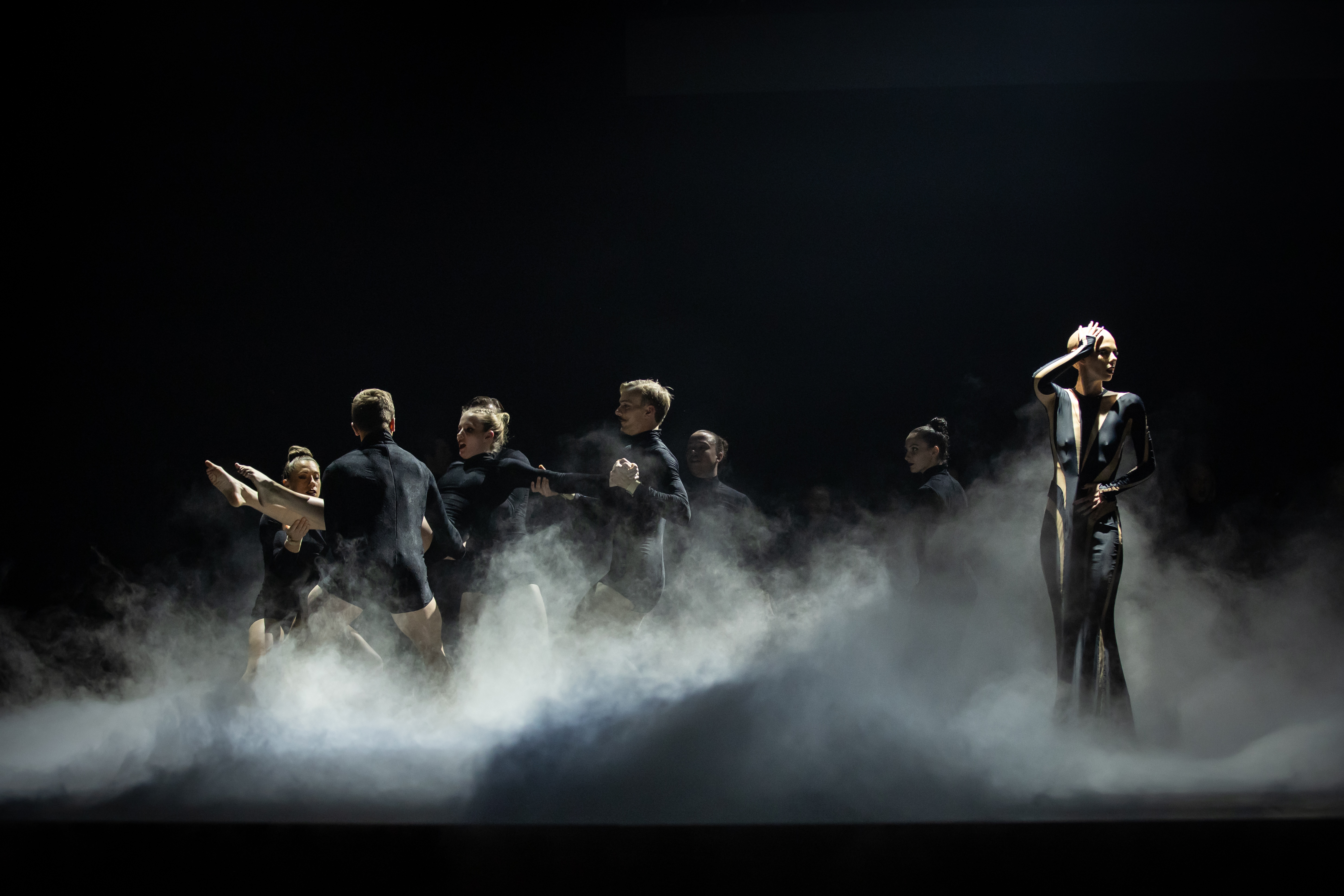 With a run time of 70 minutes, it’s a short production especially by three-act opera standards, but Dido and Aeneas has such a strong sense of momentum throughout. The stage is empty of props or set but is in constant motion with the stacking, swinging, and swarming of Circa acrobats as well as the movement of the Opera Queensland Chorus.