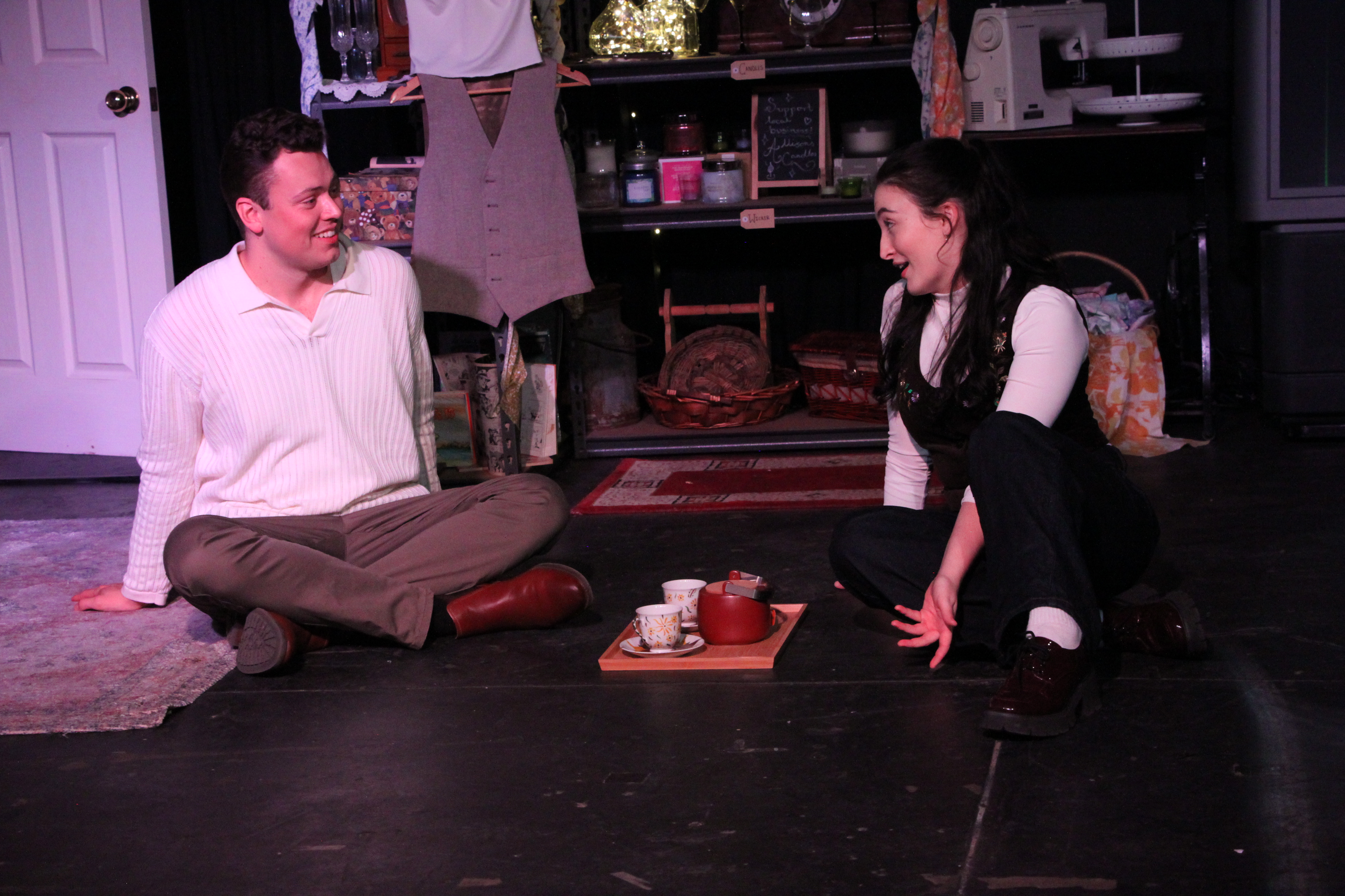 The unique setup of Backdock Arts saw audiences entering through the front door of Eden’s antique shop to take their seats, passing racks and shelves and cabinets full of interesting objects. The idea that every item in the shop had a story, like the characters, was emphasised in the play. The actors shifted furniture to create the changing settings of Eden and Noah’s memories, although it was unclear why they sat on the floor of the shop, not at the table that was used in later scenes, to drink their cups of tea.