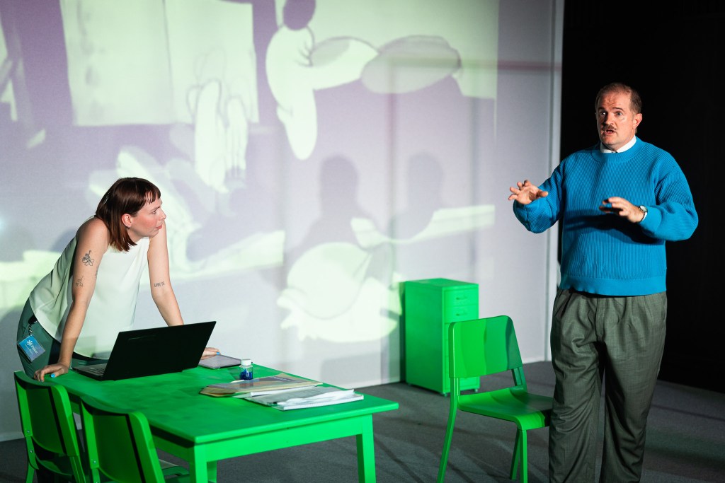 Disney Off Ice has made its world premiere at Studio 1, Yeerongpilly, presented by Observatory Theatre. This outrageous satire, the first script to be commissioned and developed through Observatory’s Telescope New Writing Program, is funny and absurd and asks interesting questions about the intersection of creation and capitalism, but I was left wanting to know more about the key characters’ stakes and motivations.