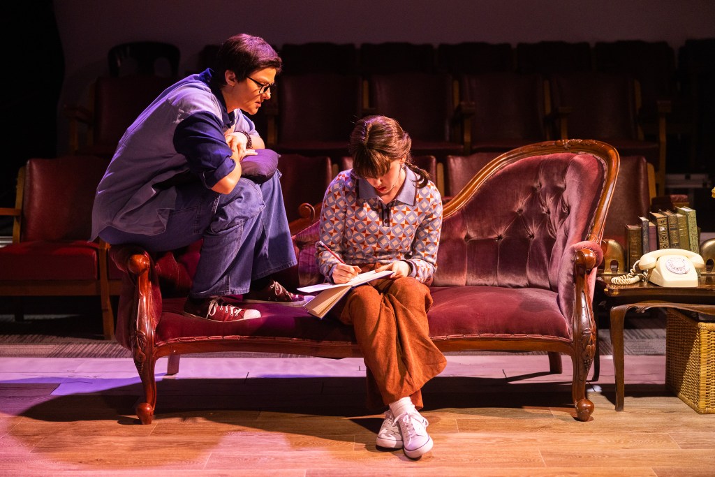 All three ‘Alisons’ were outstanding: Theo Hunt as “Young Alison”, cheerfully naïve but also afraid of her father at times; Micheal Enright as the awkward but increasing self-assured “College Alison”; and Aurelie Roque as the adult “Alison Bechdel”, who is looking back on her former selves and is an observer, rather than an active participant, for much of the play’s action. The transition from College Alison to adult Alison within the play was staged simply and beautifully.