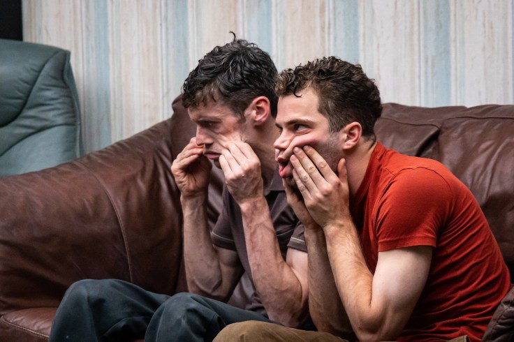 Throughout the episodes, the two men dance, sing, and perform monologues into a camera. They seemed to lurch unwillingly between scenes, dictated by the radio. In the downtime, Murphy’s character tries to focus on his book, and keeping everything in its place, while Goldsmith’s character listens closely, plagued by visions of a diver in standard diving dress. From wedding speeches to raves to classic films, Volcano draws on a vast range of styles and influences but the result feels coherent and the physical language of the work is clearly defined.