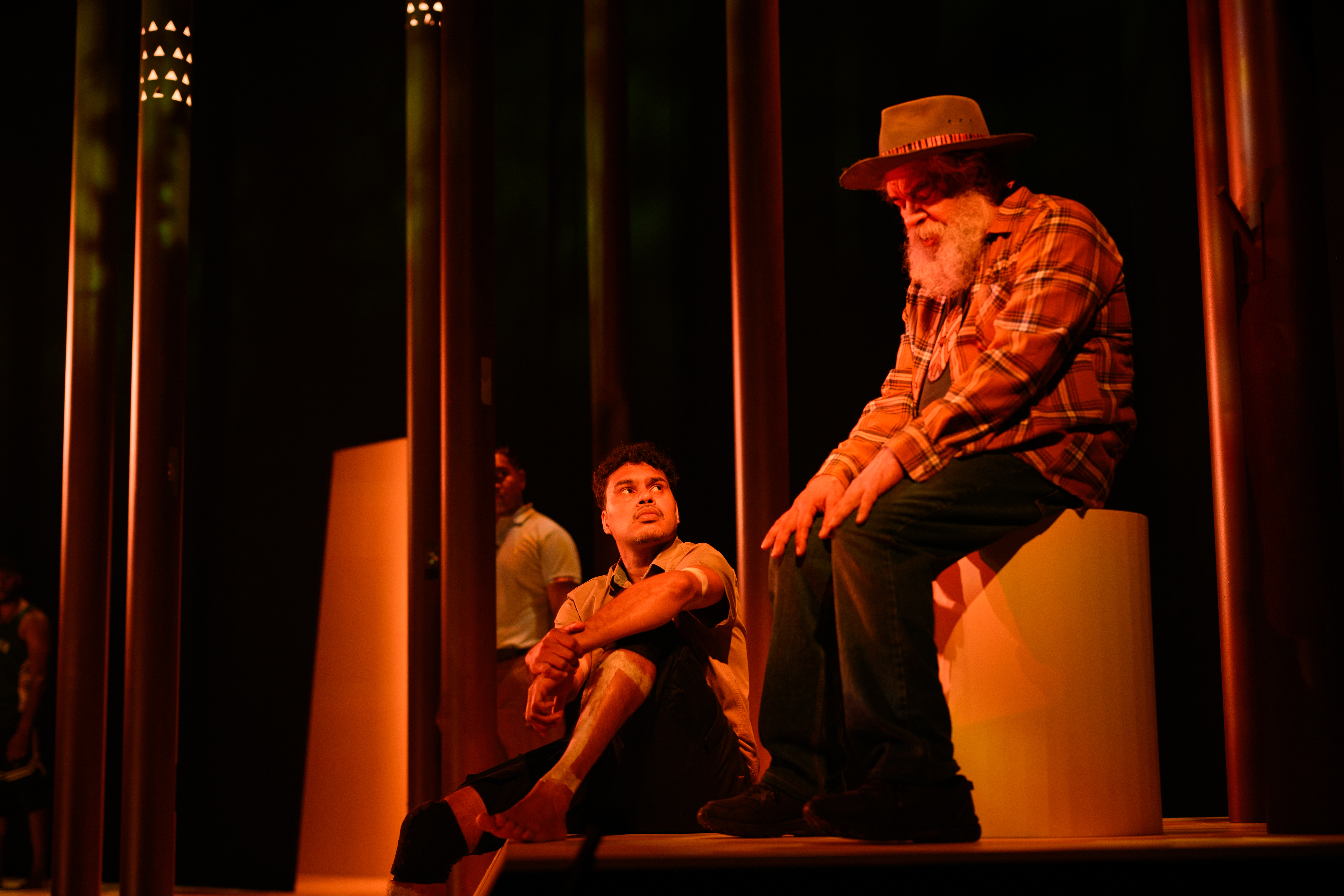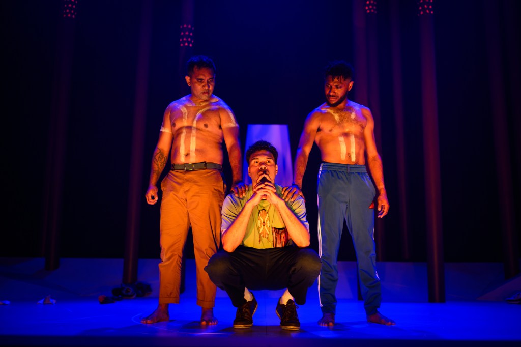 Drandic’s direction maintains a triad formation onstage, centring the man whose story is in focus, and choreography by Waangenga Blanco incorporates contemporary and cultural dance with influences from hip hop and Michael Jackson. Lenny Donahue, Benjin Maza, and Tibian Wyles also contributed to the choreography.