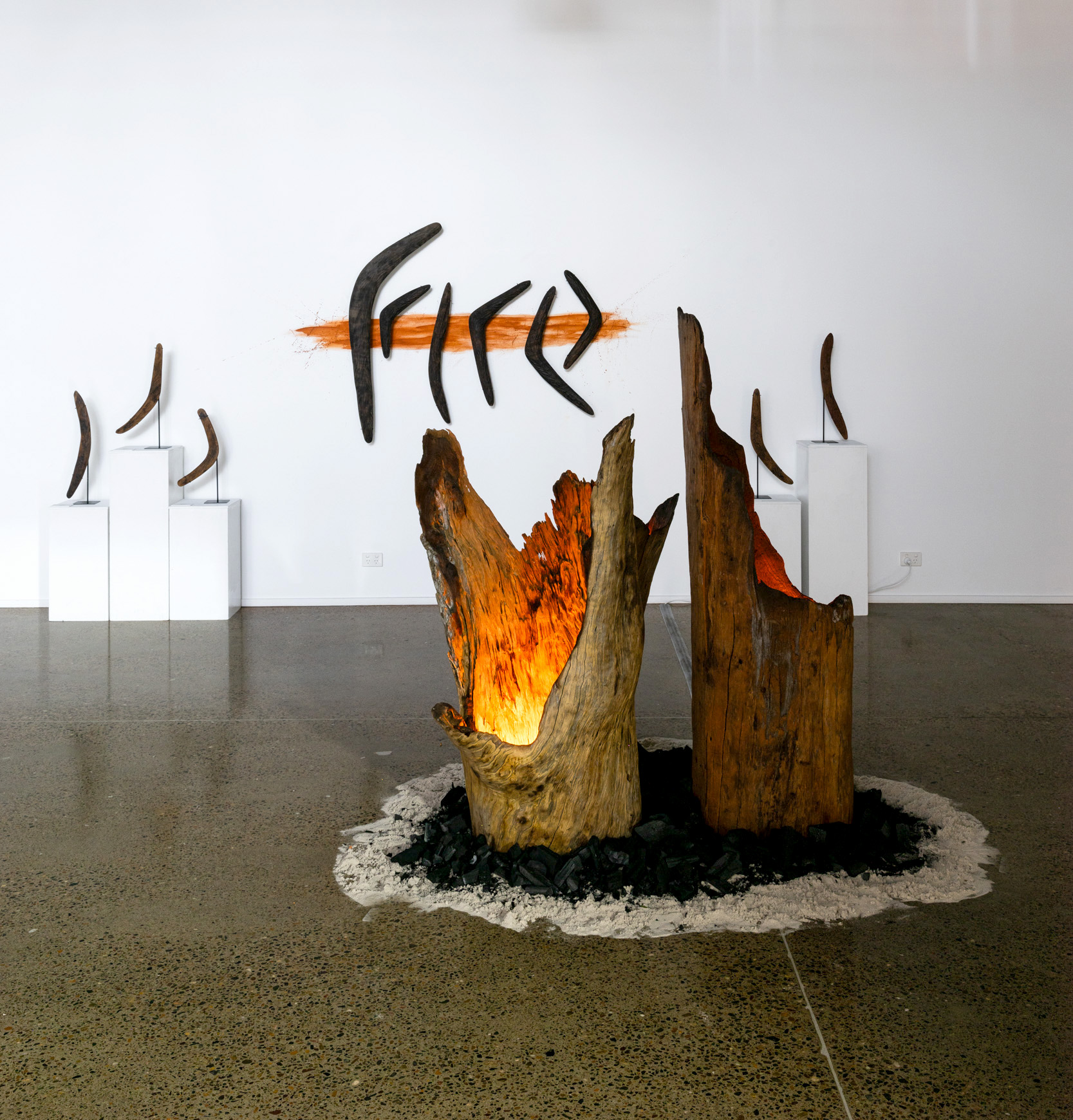 In his first exhibition, Sarra invites viewers to explore the deep connection between fire and First Nations culture, as experienced by the artist. Sarra’s exploration of fire underscores its role in shaping identity and community, celebrating the resilience and ingenuity of First Nations people. In this exhibition viewers are encouraged to reflect on our relationship with fire, heritage and the natural world.