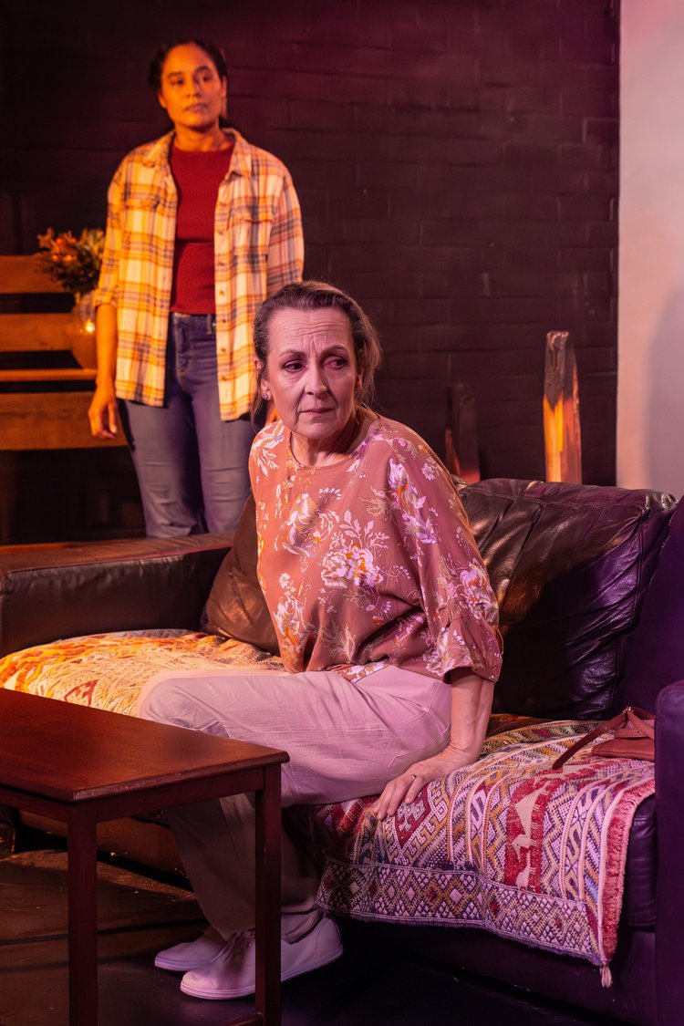 Helen Howard was outstanding as the exasperated and sharp-tongued Toinette, and Carla Haynes played the more steadfast and level-headed Lia. Spencer Cliff played Alex’s son Sean, who takes an antagonistic approach to changing Lia’s mind and regurgitates facts and figures to make his point. Cliff stared searchingly into the audience as he delivered his eulogy, and his character’s matter-of-fact practicality was belied by the emotional monologue he delivered alone with his father, and in his reaction to Alex’s eventual death.