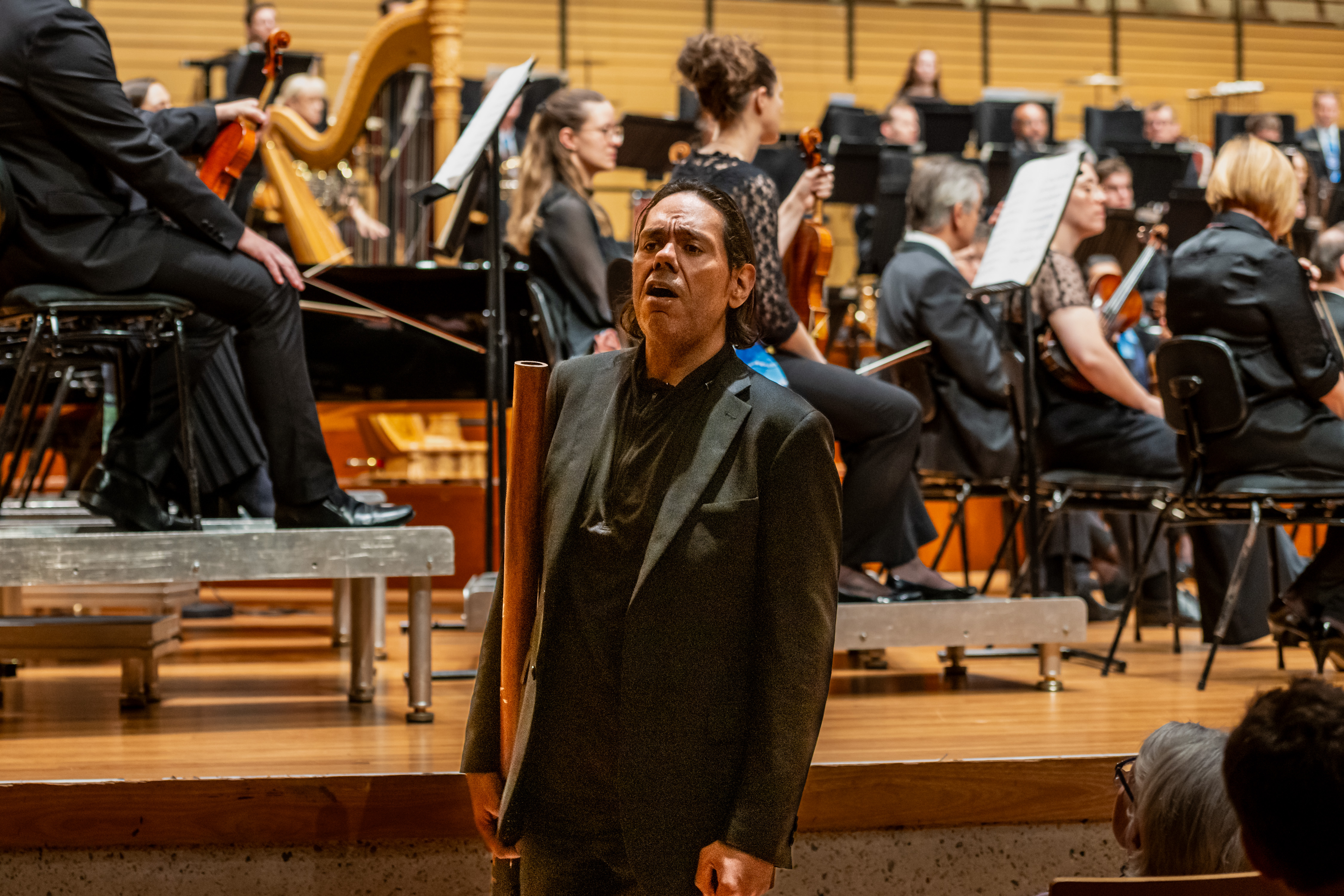 Barton began in the audience, singing acapella as he approached the stage. Sculthorpe’s compositions are so strongly evocative; I felt as though the landscape was rushing past me, from the screeching of birds overhead in the violins to a sense of stillness in the middle of the piece.