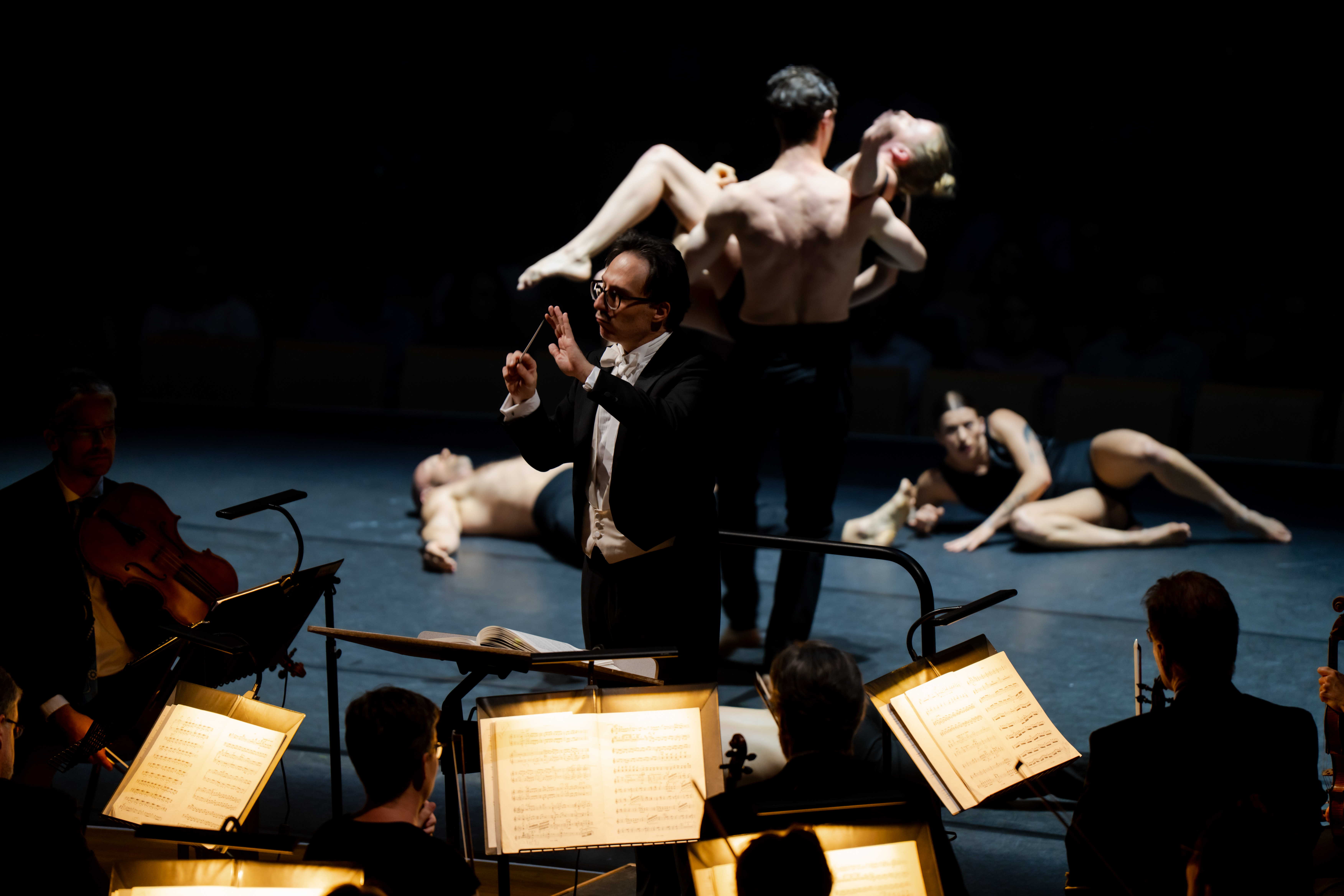 Following an interval, during which the stage was adjusted to create a performance space between the orchestra and the audience, the concert resumed with The Rite of Spring. Ten Circa acrobats entered the stage as the orchestra tuned up.