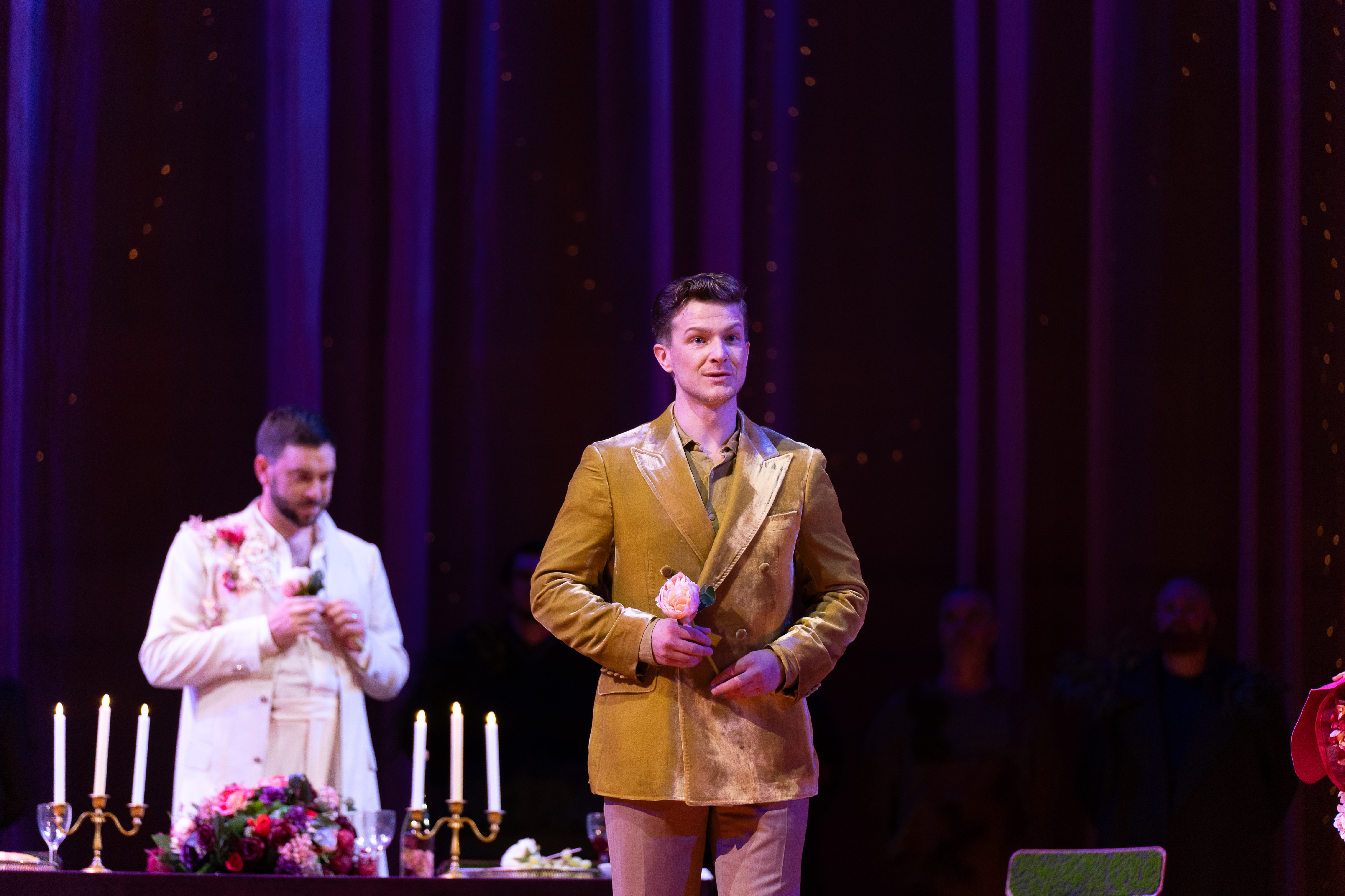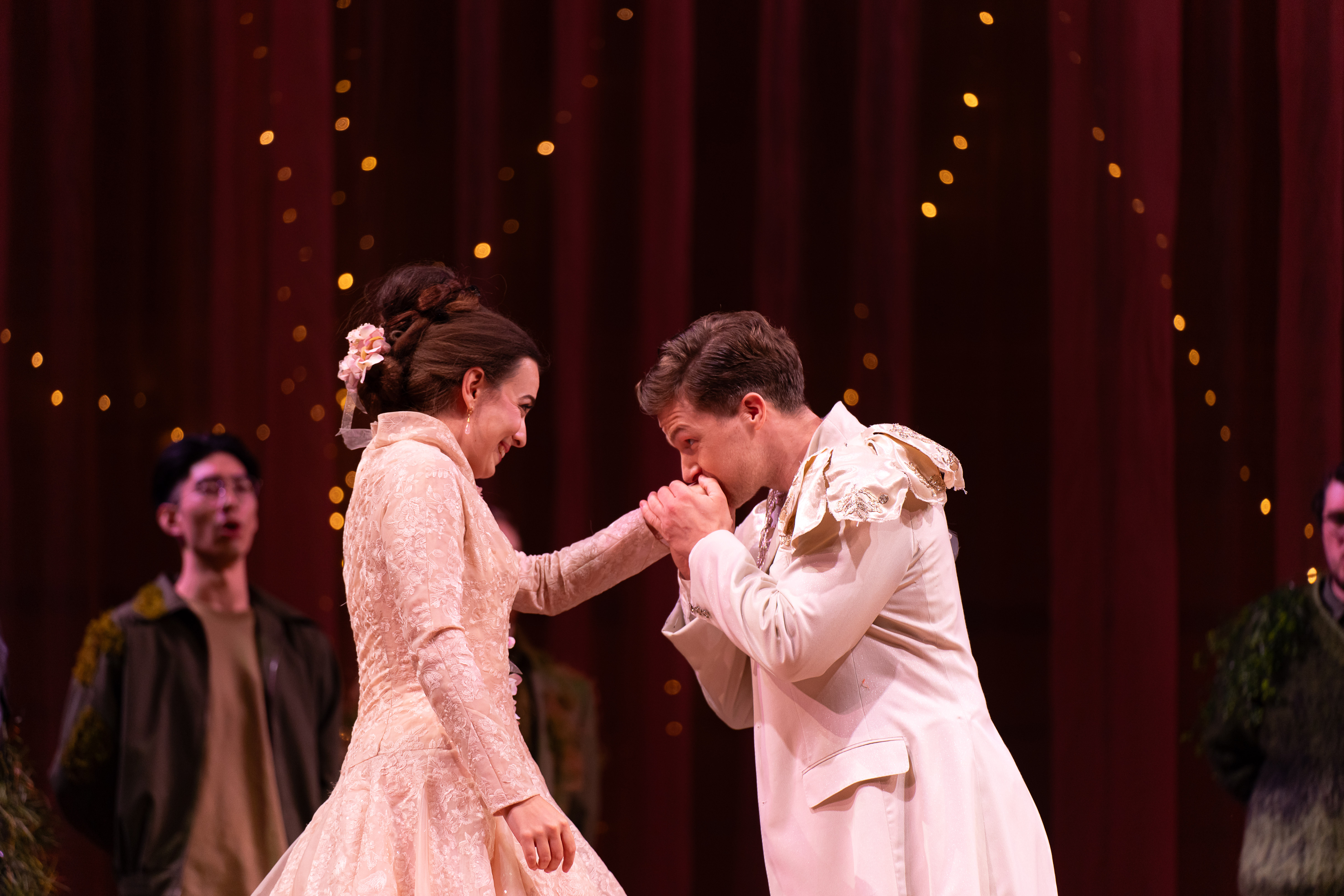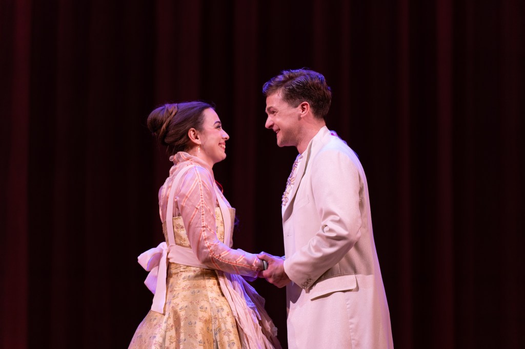 Nekoranec’s powerful voice soared over the music with incredible control and clarity, and Gaudenzi astonished with the depth and expansiveness of her singing. From their sweet and awkward first meeting to their wedding day, the two leads had a wonderful onstage chemistry and their evolving relationship was reflected in the performers’ body language.