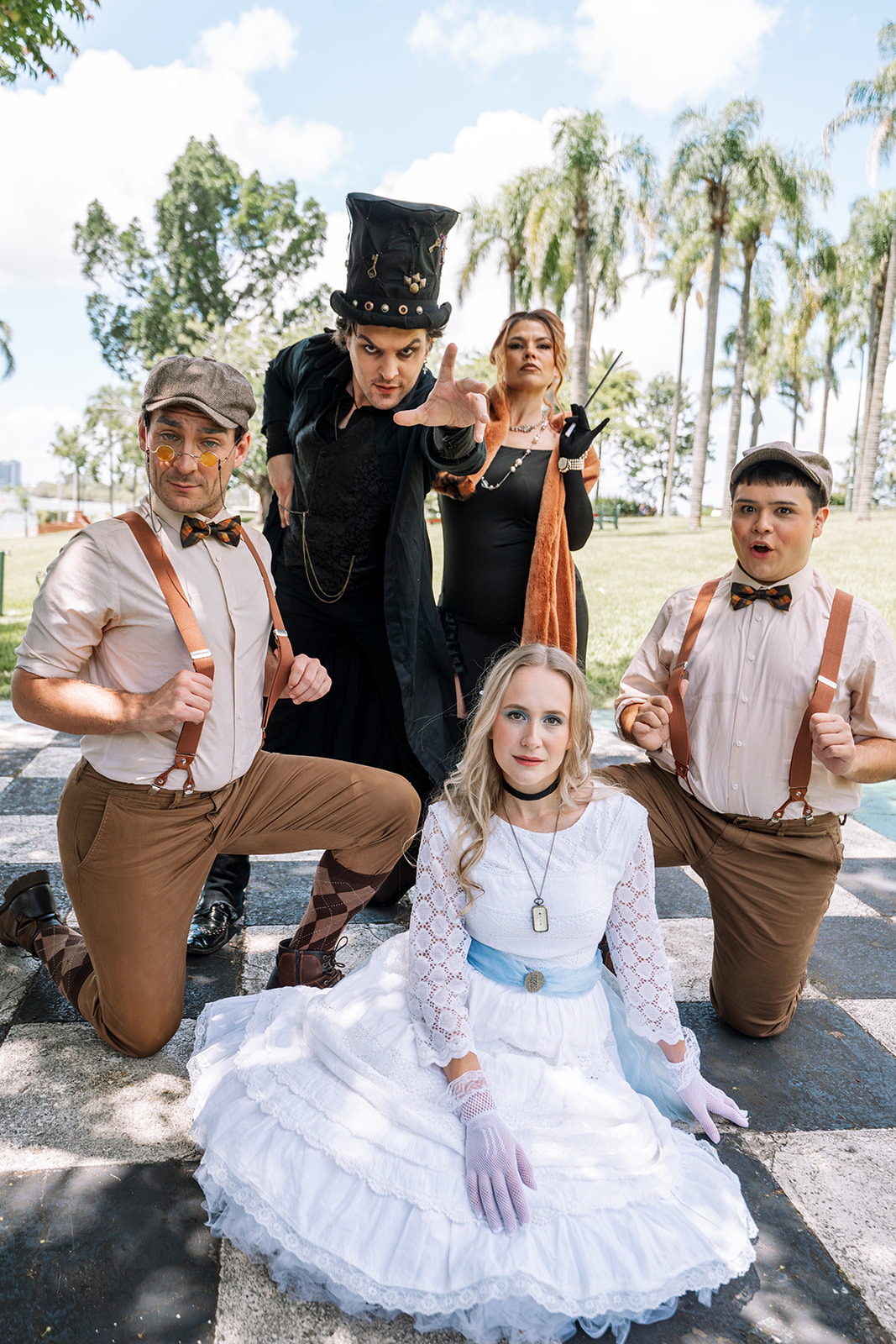 Leading the cast is Reagan Warner, reprising his role as the enigmatic Hatter. Joining him on the adventure are Sophie Mason as Alice, Jennifer B Ashley as Ches, Jaya Fisher-Smith as Dee, and Peter Wood as Dum.