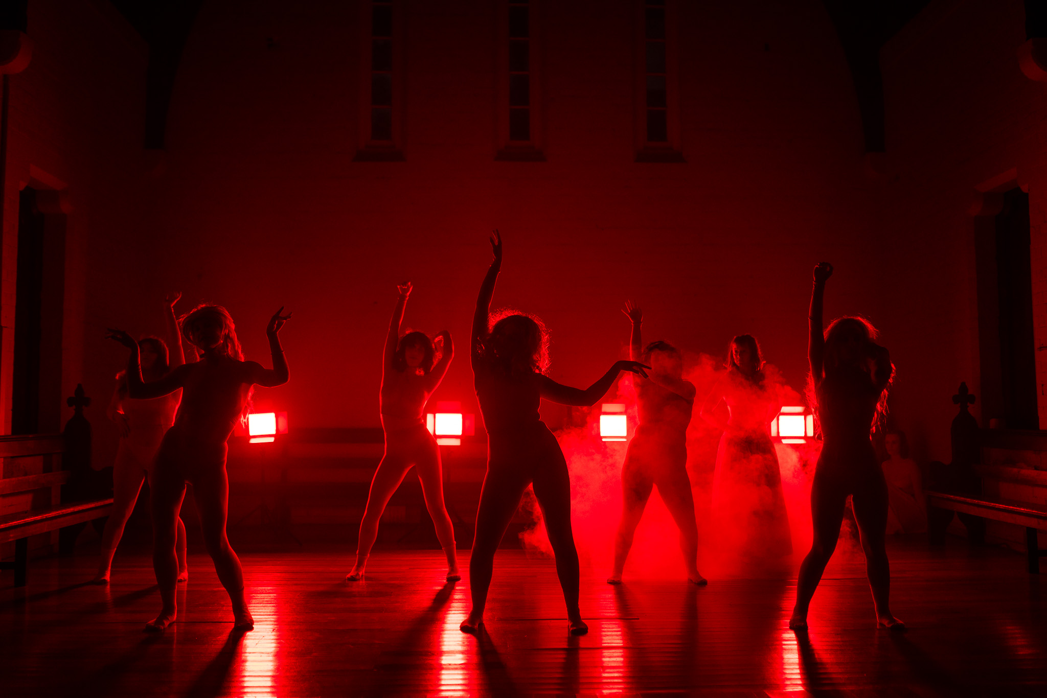 Directed and designed by Zen Zen Zo Artistic Director Indiah Morris, Blushing was a promenade performance by eight artists in the high-ceilinged hall of Fortitude Valley’s Holy Trinity Church. The audience shifted positions in the space, sitting or kneeling in the areas indicated by the artists. All four sides of the space were utilised, and the scene was set prior to entry as the audience gathered outside and were briefly, wordlessly engaged by the performers through gestures and eye contact.