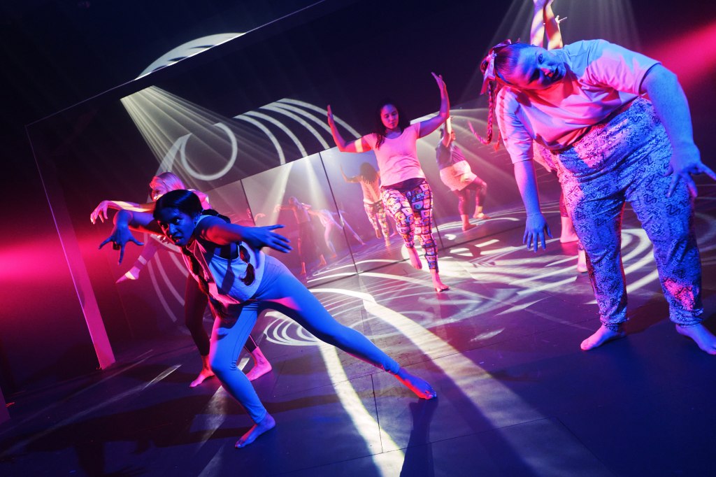 Wynn’s direction built understanding of the team dynamic with small gestures of support and encouragement between the dancers, and crafted striking moments of comparison across the characters’ lives – notably, a triptych towards the end of the play featuring Amina, Connie, and Sophia in their homes.