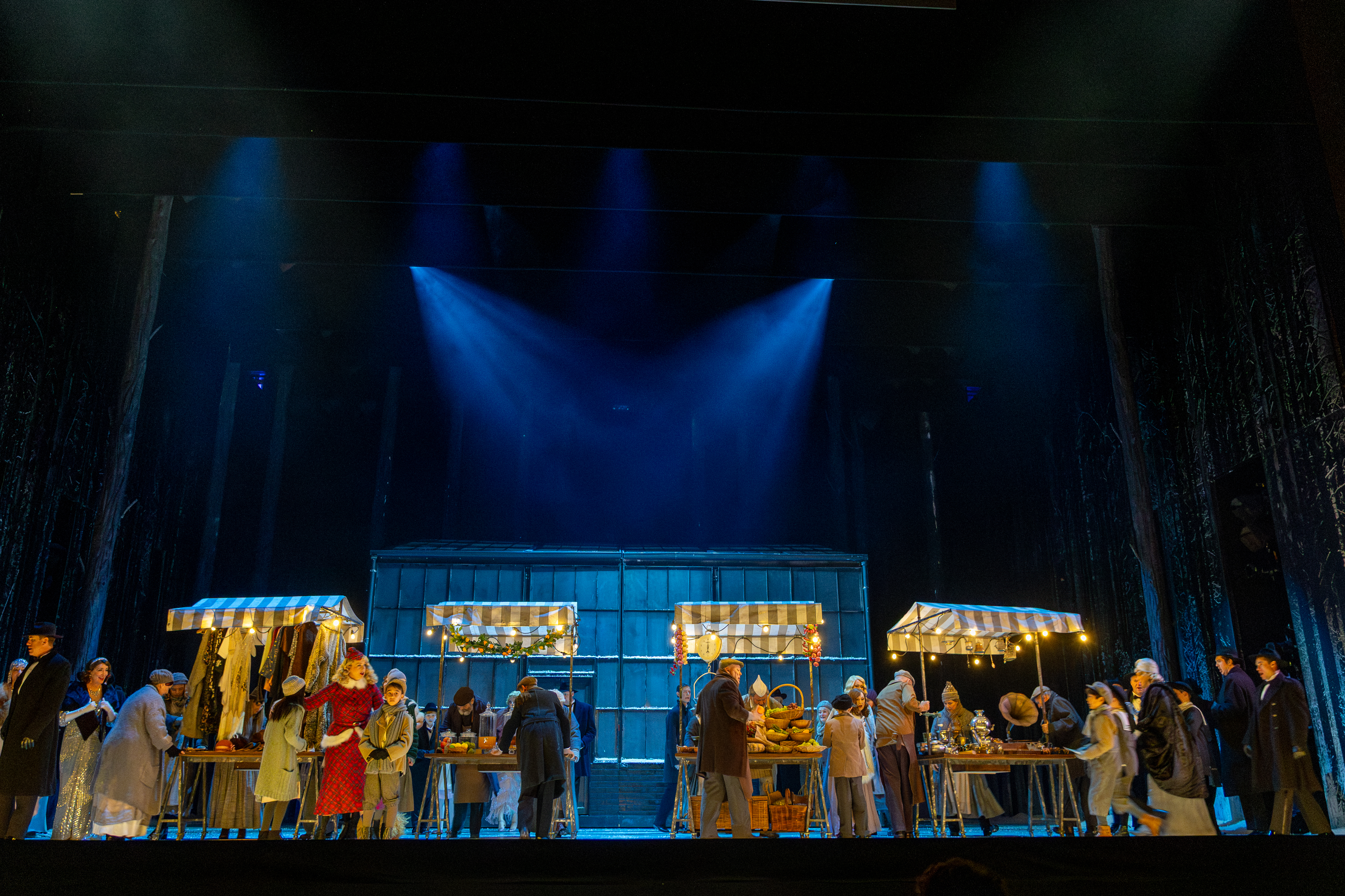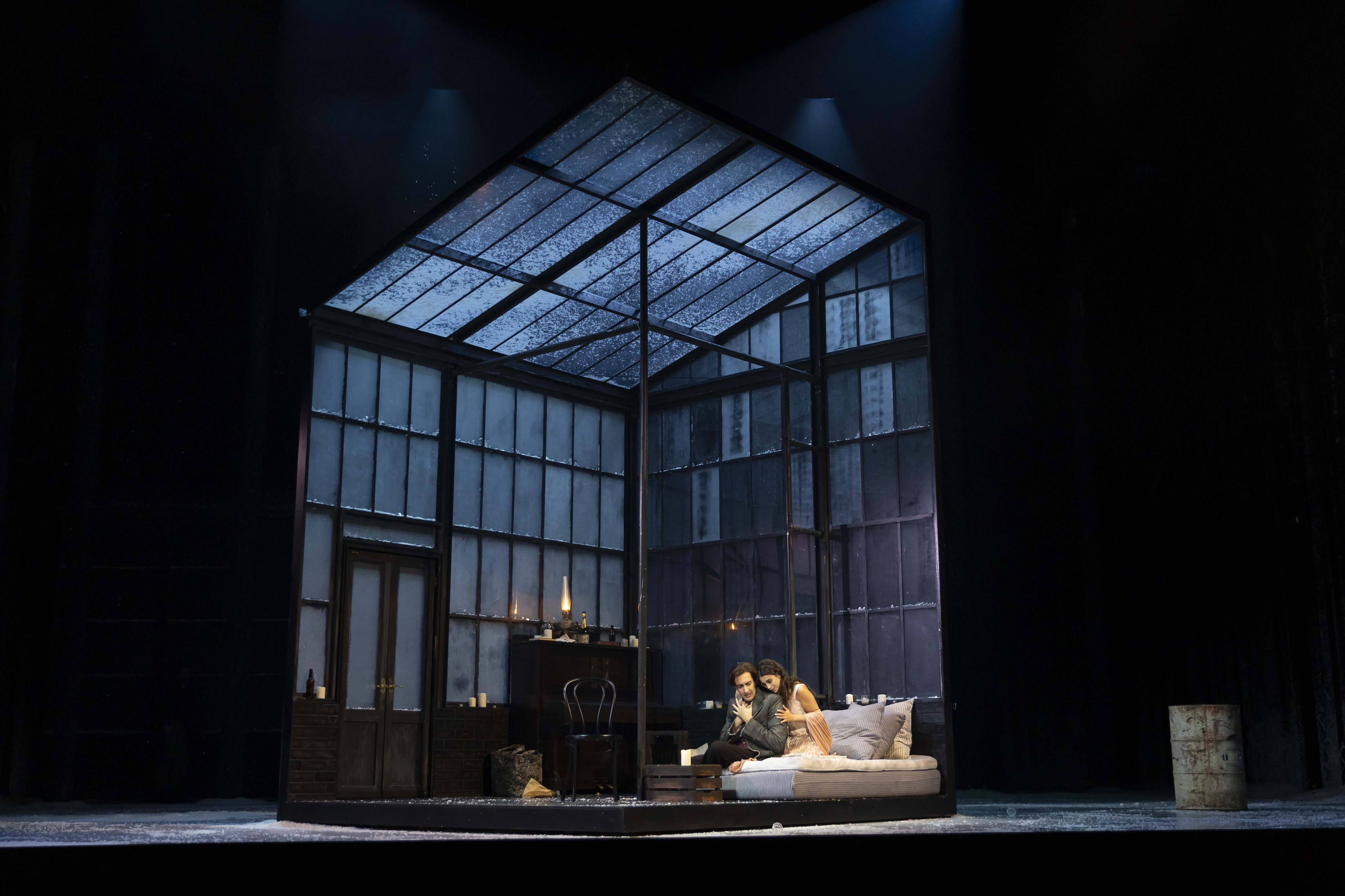The revolve was also used to create a stronger sense of movement around the stage and for impactful character interactions, especially the initial parting of Mimì and Rodolfo. Tiny moments of detail added an extra shimmer of magic, like the way the falling snow turned to glitter in the moment that Mimì and Ridolfo fell in love.
