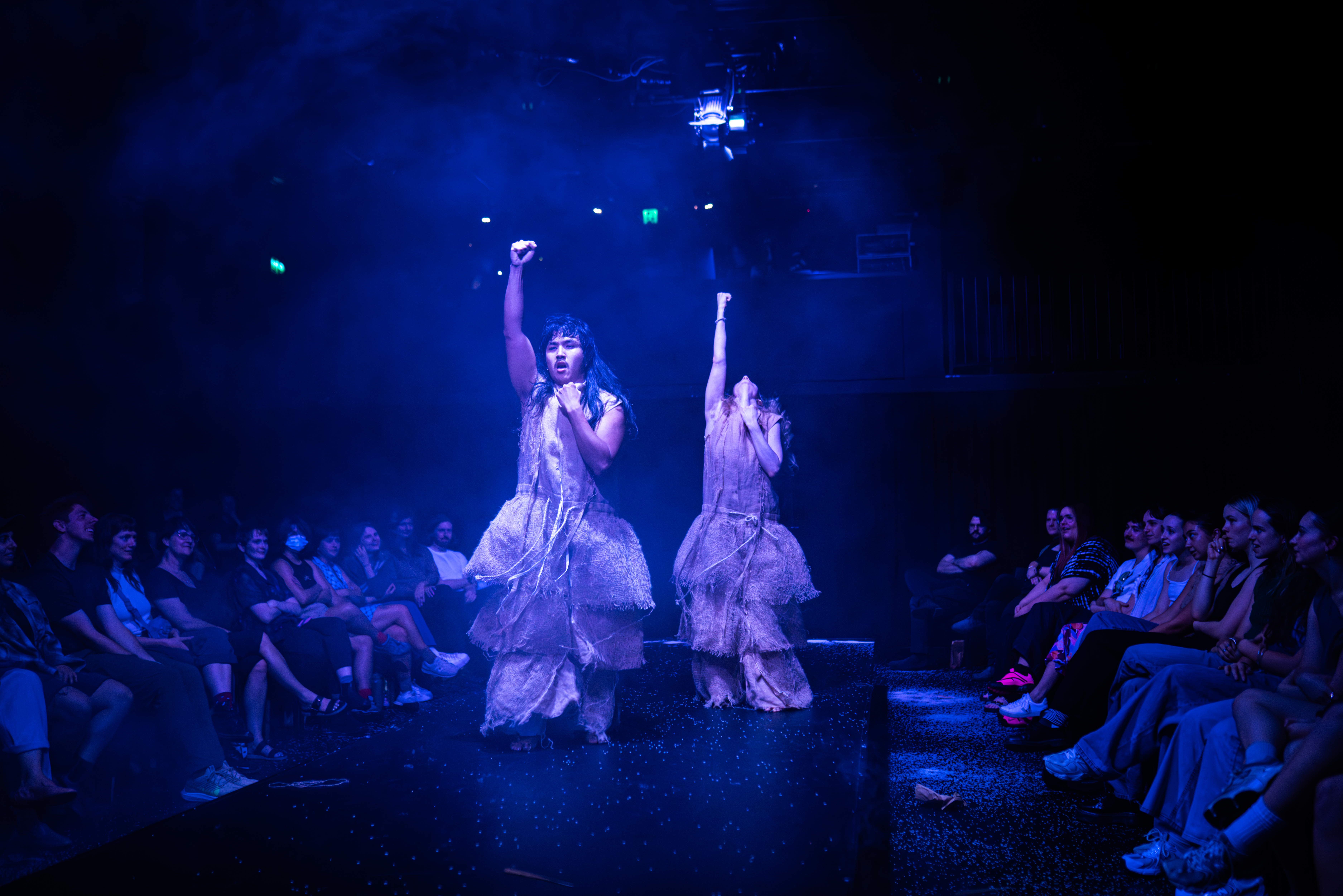 Malbasias explains bahala na in his program note as “…a powerful, paradoxical phrase that has shaped generations…more than resignation, it is faith, courage and surrender all at once: a willingness to face uncertainty and keep moving anyway.” Bahala/o explored this philosophy through the lens of the Filipino-Australian queer experience, speaking to the chaos and complexities of intersecting identities.