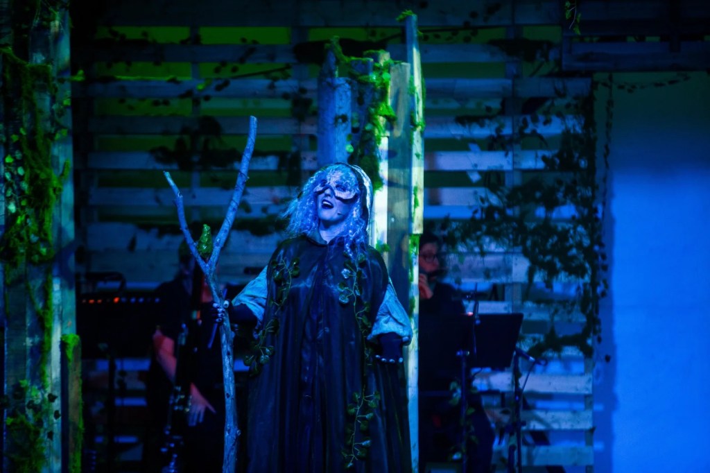 Lighting design by Andrew “Panda” Haden saturated the stage in dramatic colours, and created the effect of light dappled through leaves in the woods. Sound design by John Taylor (JTAP) supported the magical and supernatural elements of the musical alongside the live performance of the score.